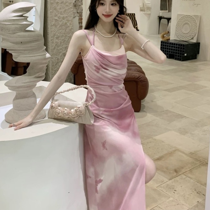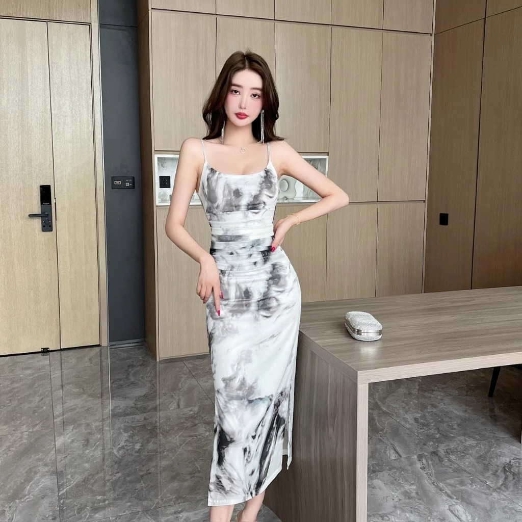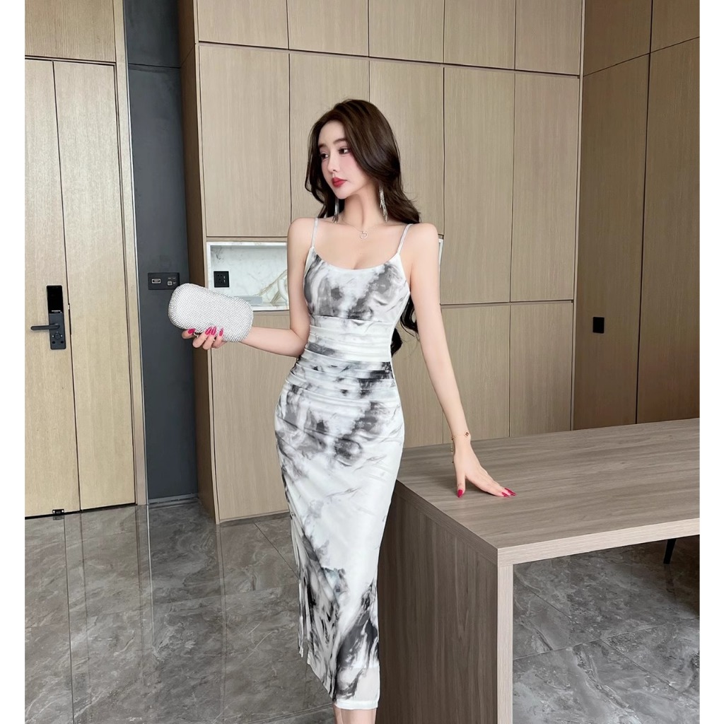 Meirong dress putih vintage pantai panjang wanita korea style party dress bunga press body elegan