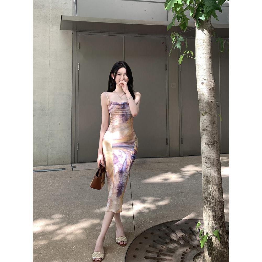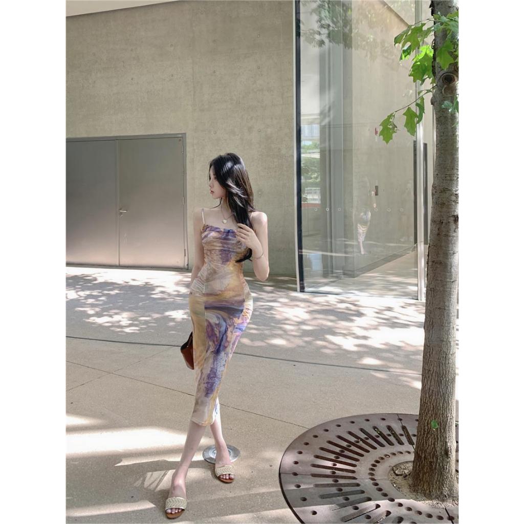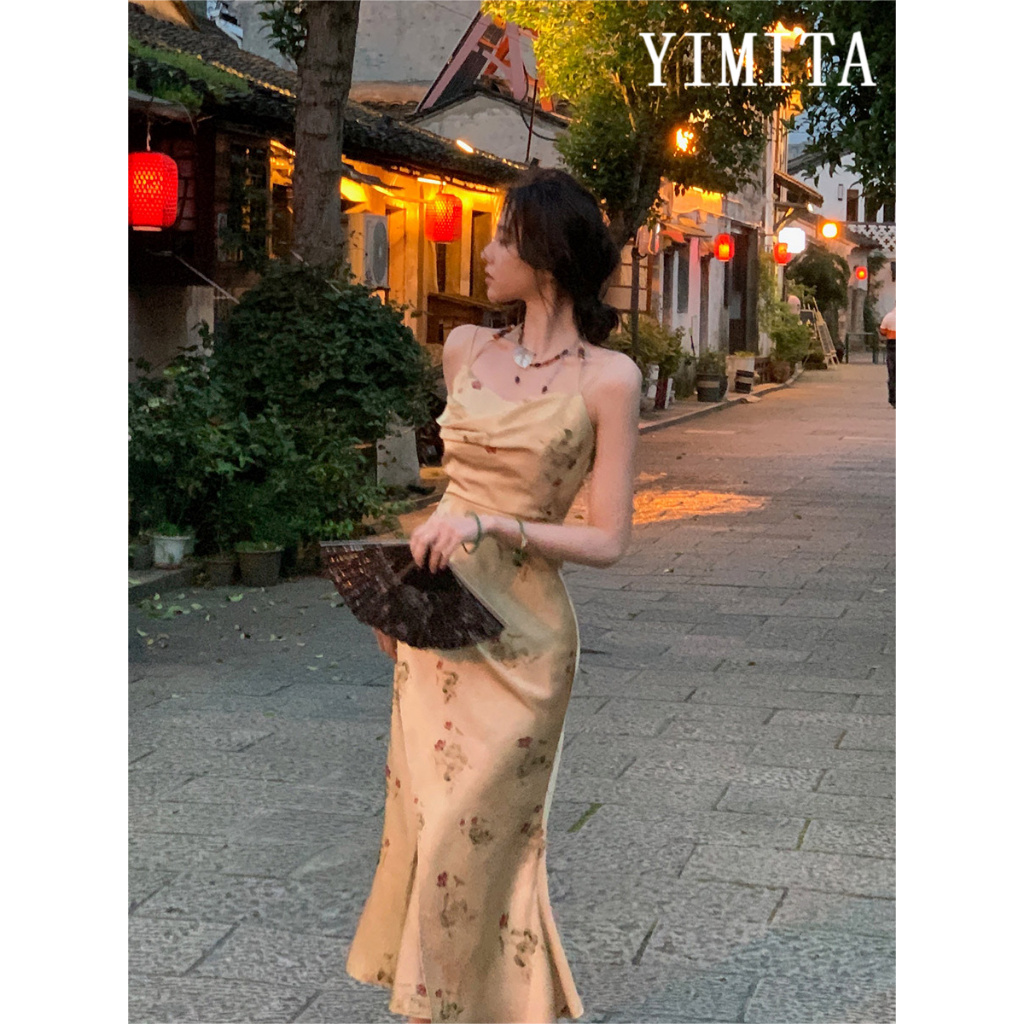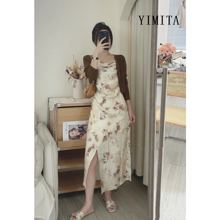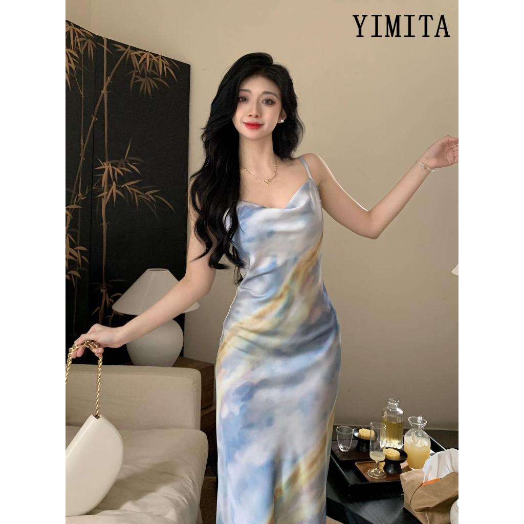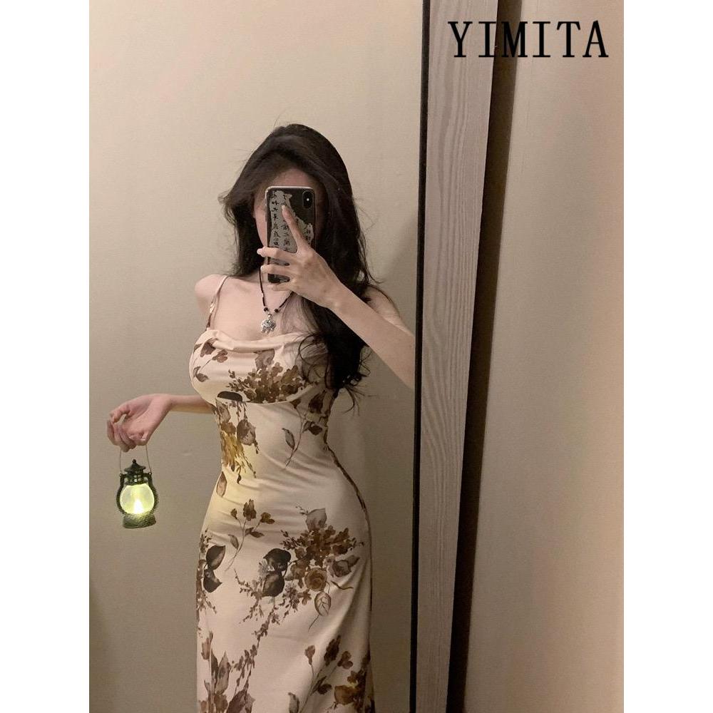 YIMITA long dress floral pantai bunga press body long wanita kekinian baju dress pink soft tanpa lengan party summer dre