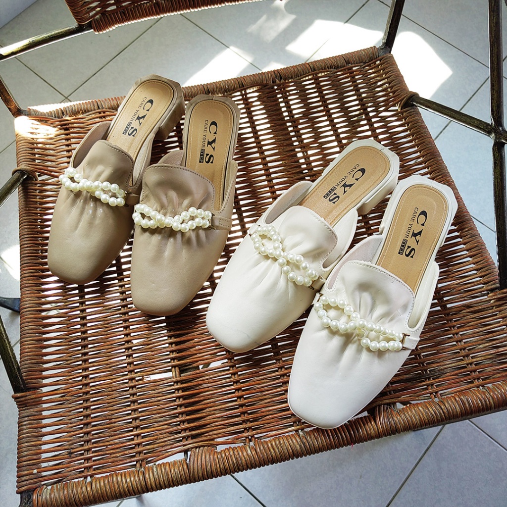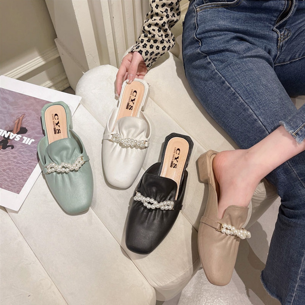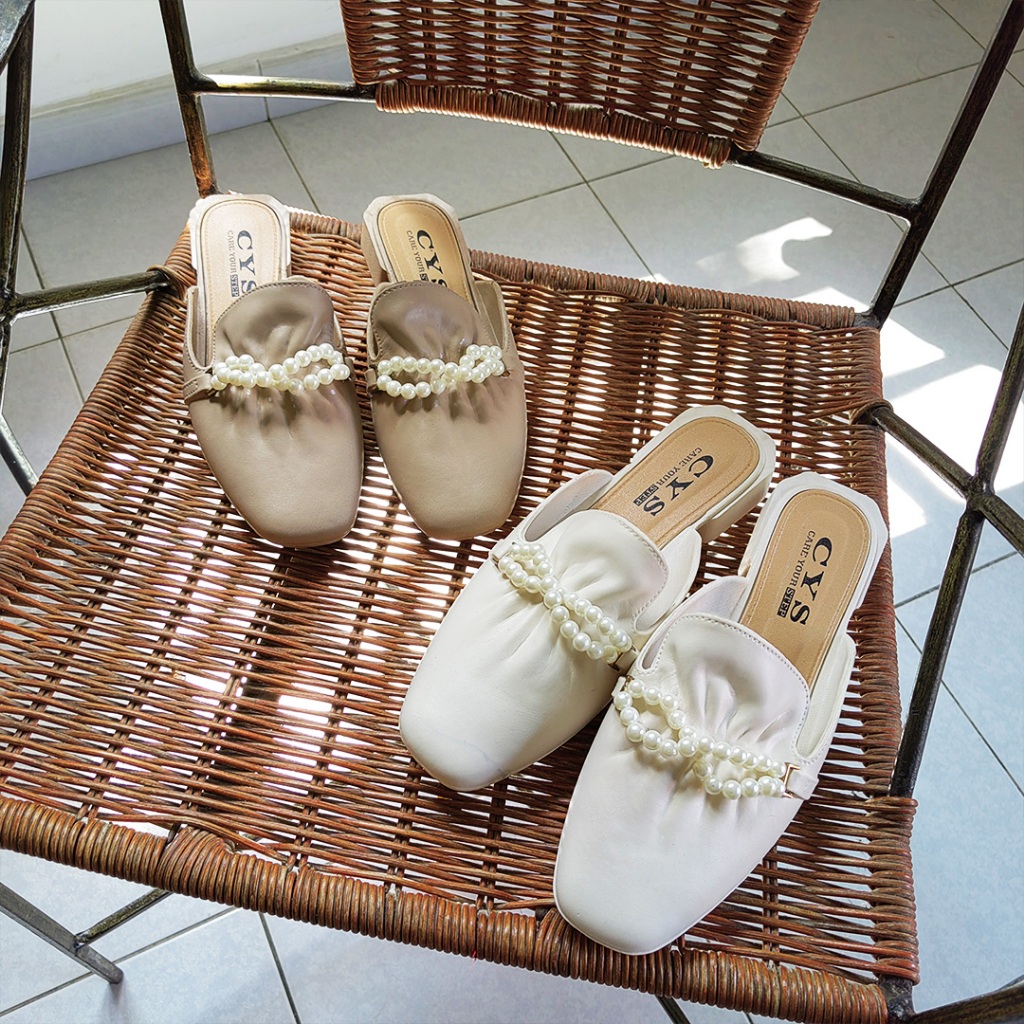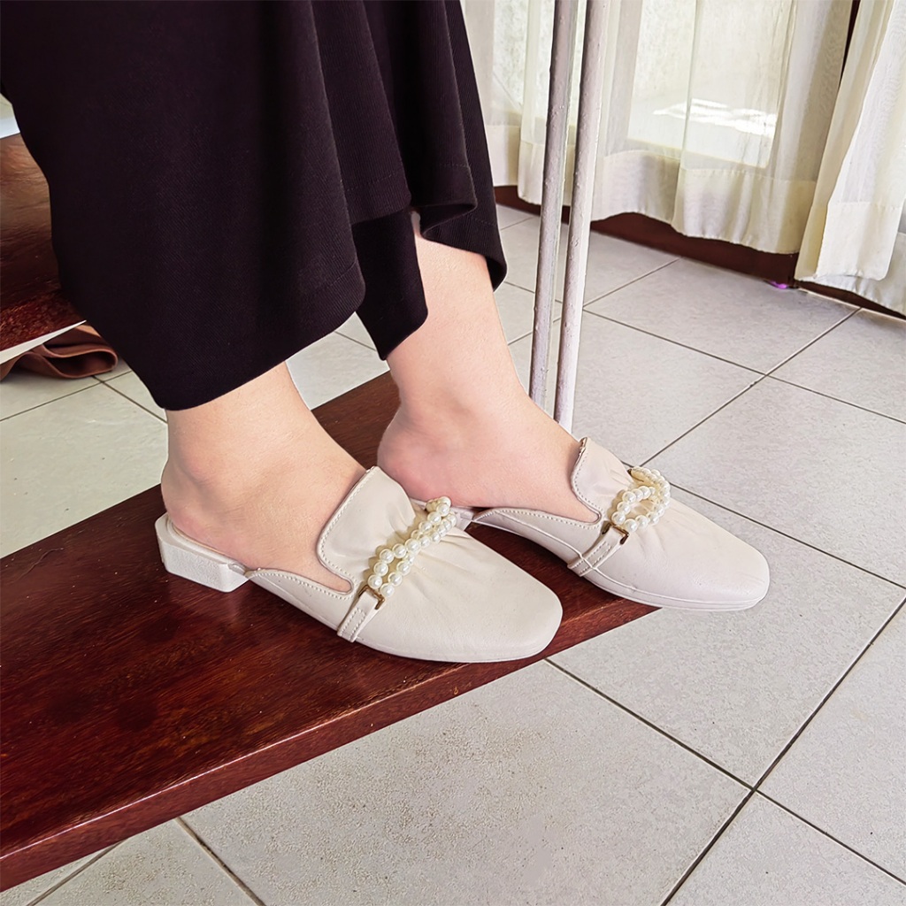 Sandal Flat Mules Slip On Wanita / Flatshoes Mutiara Casual Elegant Daily Wanita SPT-41