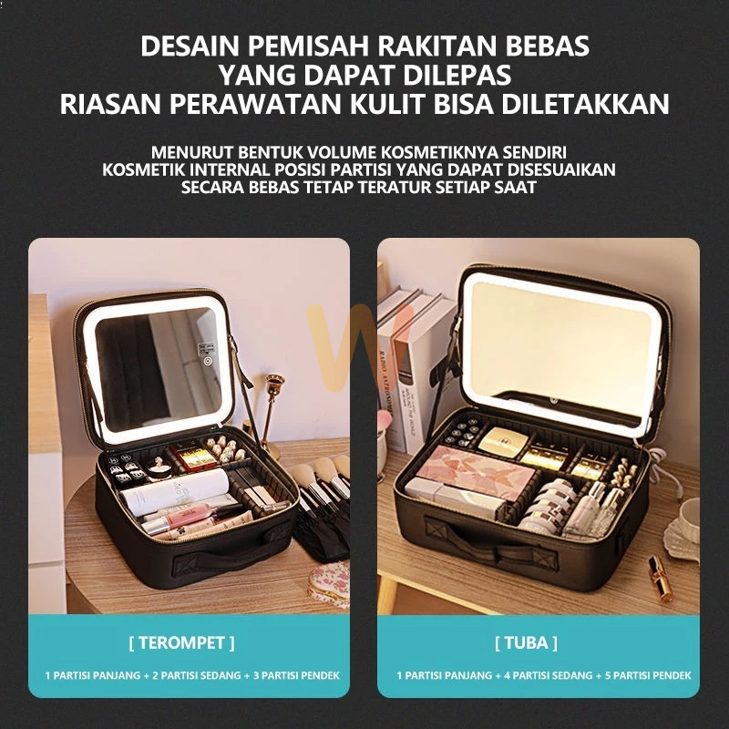 Tas Makeup Lampu LED Makeupartist Bag MUA Beauty Case Beautycase LED Bag Mua L Full Mirror Tas Makeup Lampu