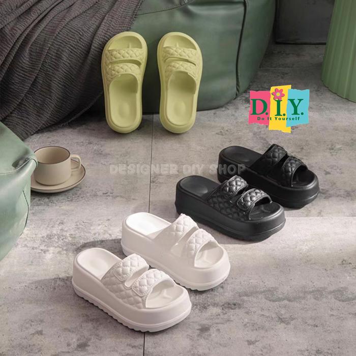 Sandal Wanita Jelly Selop EVA Rubber Strap Dua Sandal Jelly Wedges 7CM Wanita Karet Sendal