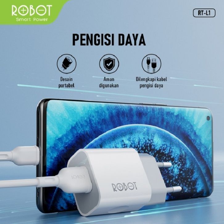 FREE Kabel Micro USBROBOT Charger Single Port RT-L1 PC Kepala Charger Quick Charging Anti Panas Original Garansi 1 Tahun