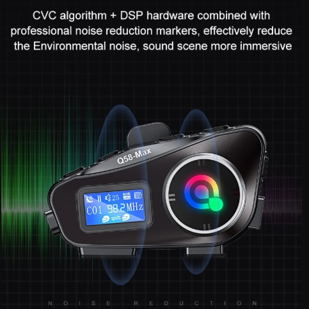 Intercom Q58max Helm Bluetooth Headset Helmet Motorcycle with LCD Display Q58 - Black