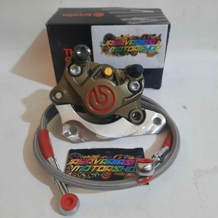 Paketan MURAH BANGET Kaliper Brcmbo Big Logo 2Piston 2P Babet + Breket 2P Disc Standar 200mm + Selang Rem Silver Depan