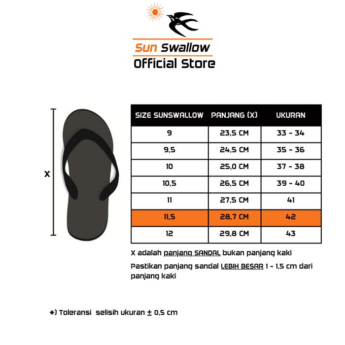 [Star]Sandal Jepit Karet Pria Sendal Sun Swallow Legian Warna Hitam Size 11,5 Ukuran 42 - 11,5 (42)