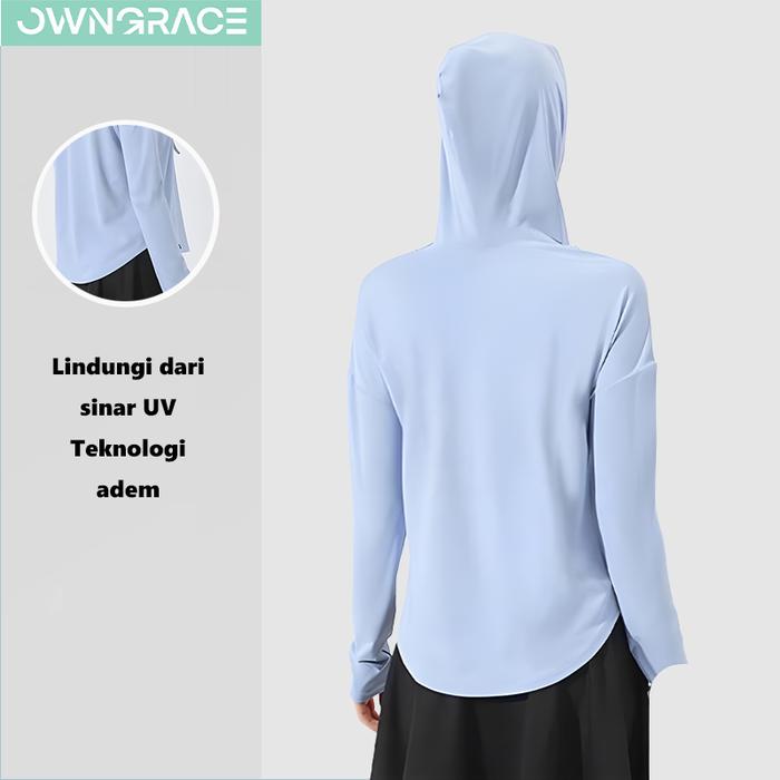 Owngrace Jaket Dengan Penutup Kepala UPF 50+ untuk Wanita dengan Jahitan Rapi dan Bahan Bernapas yang Cepat Kering