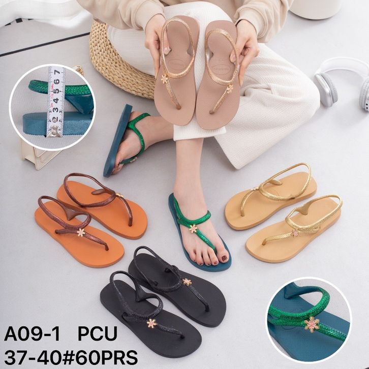TERBARU Sandal Jepit Wanita Cantik Sendal Wanita Tali Belakang Aksesoris bunga elegan A09-1 anilg