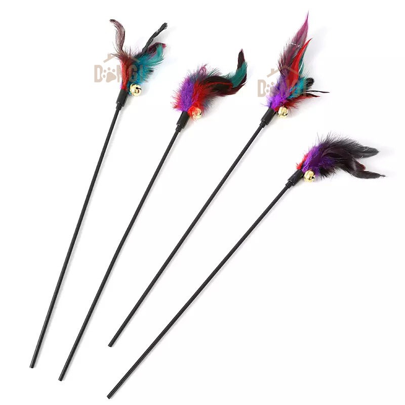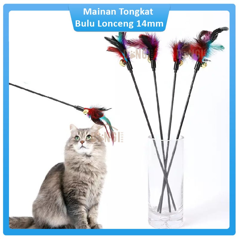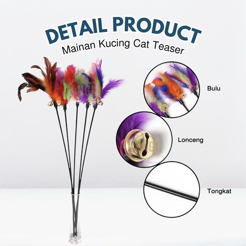 Mainan Kucing Cat Teaser Cat Toys Stick Mainan Kucing bulu Lonceng Krincing Random
