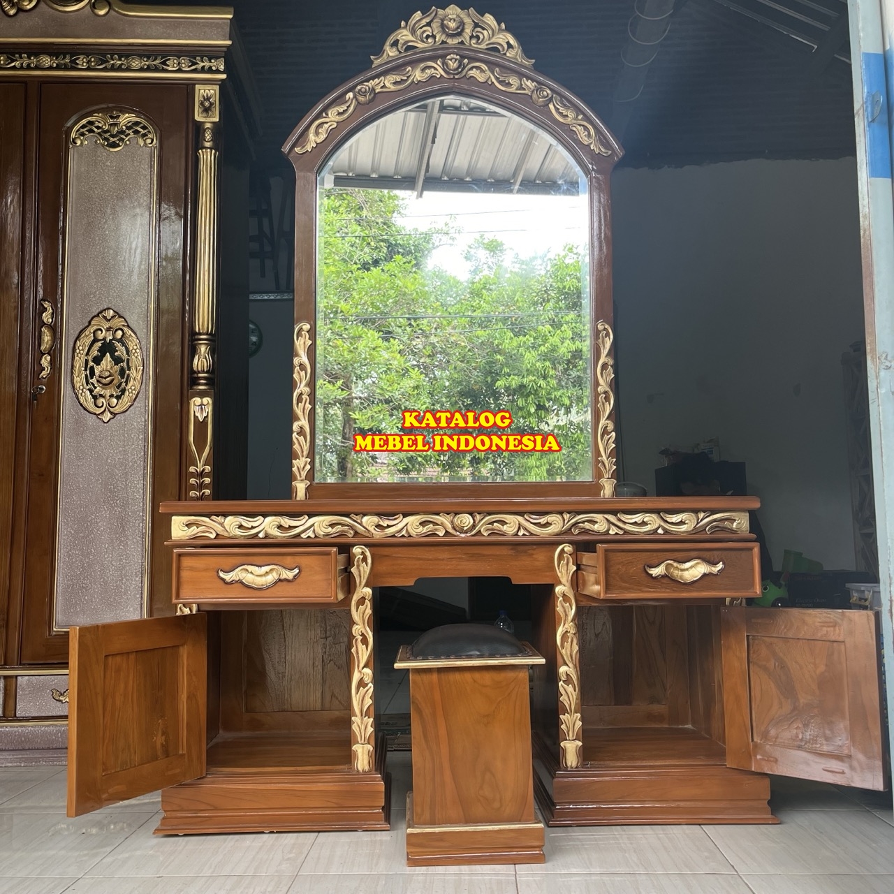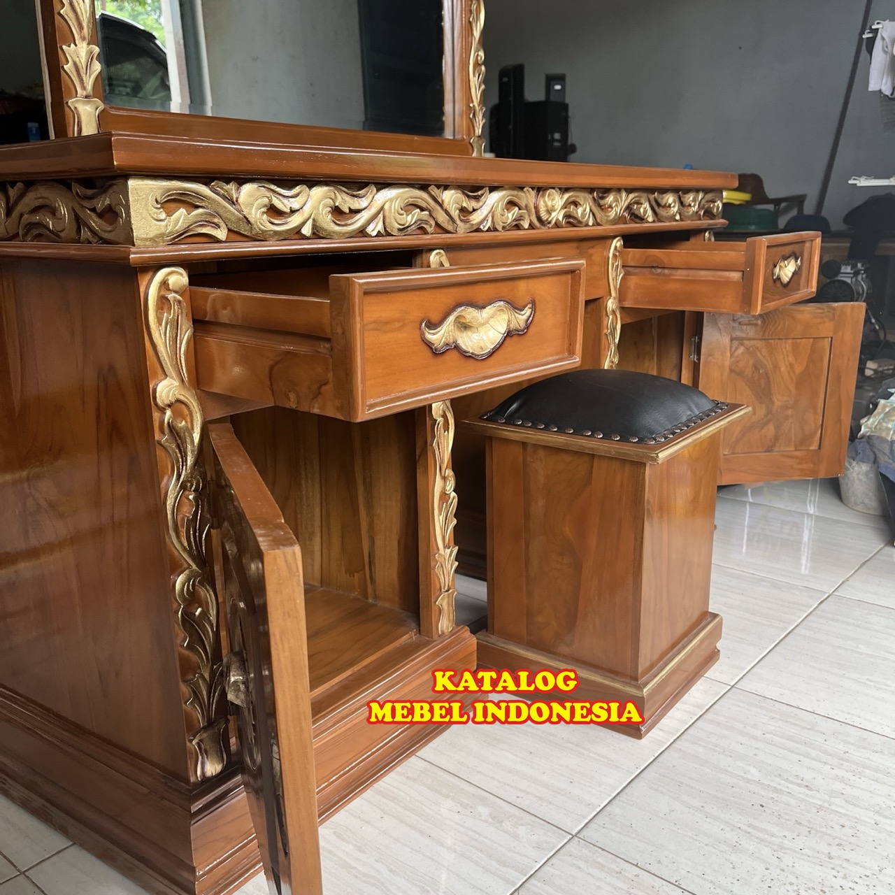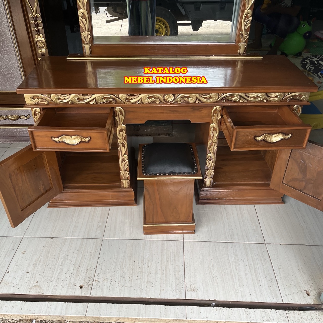 Meja Rias Rawana Kayu Jati Solid dengan Motif Ukir