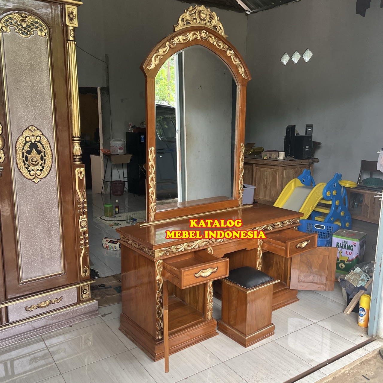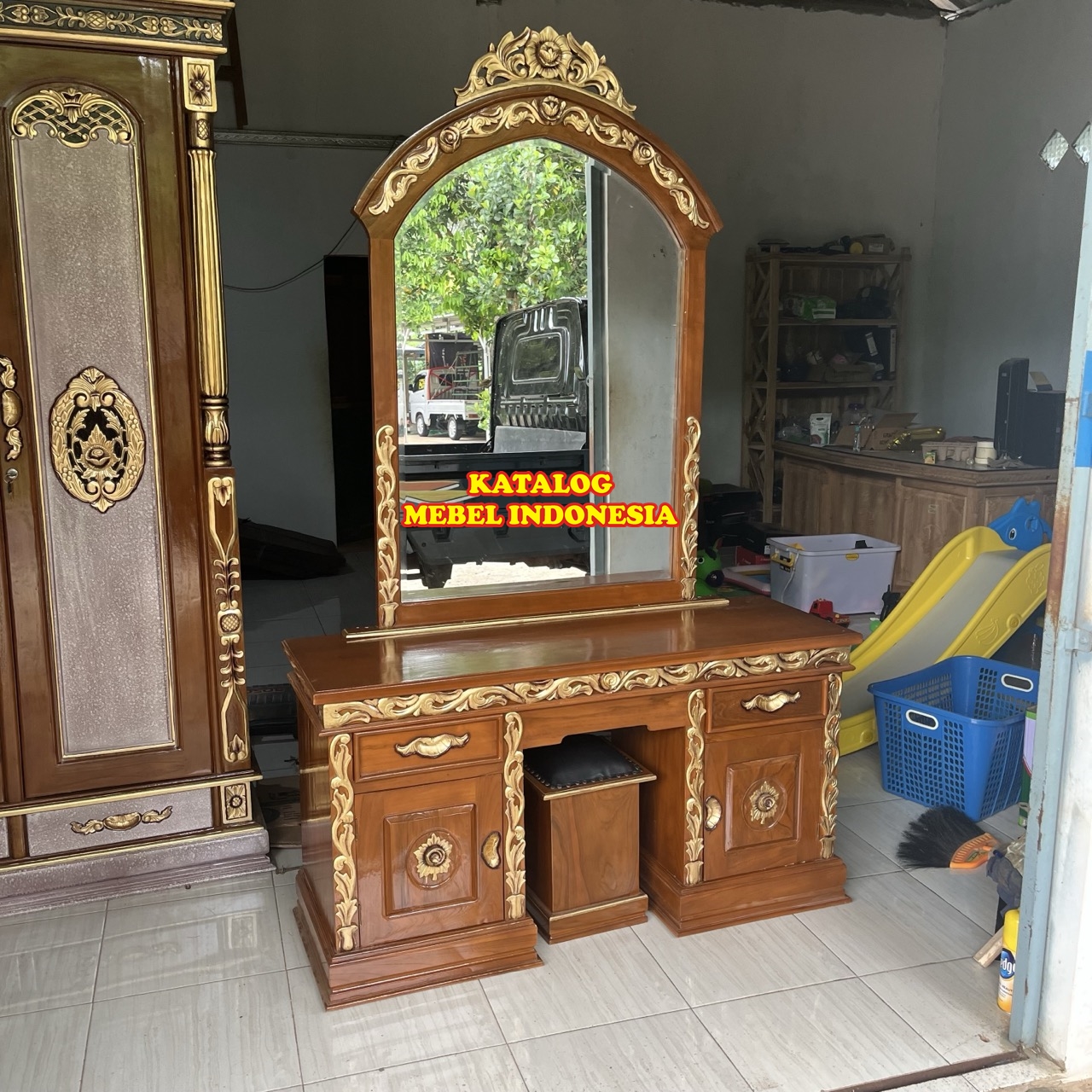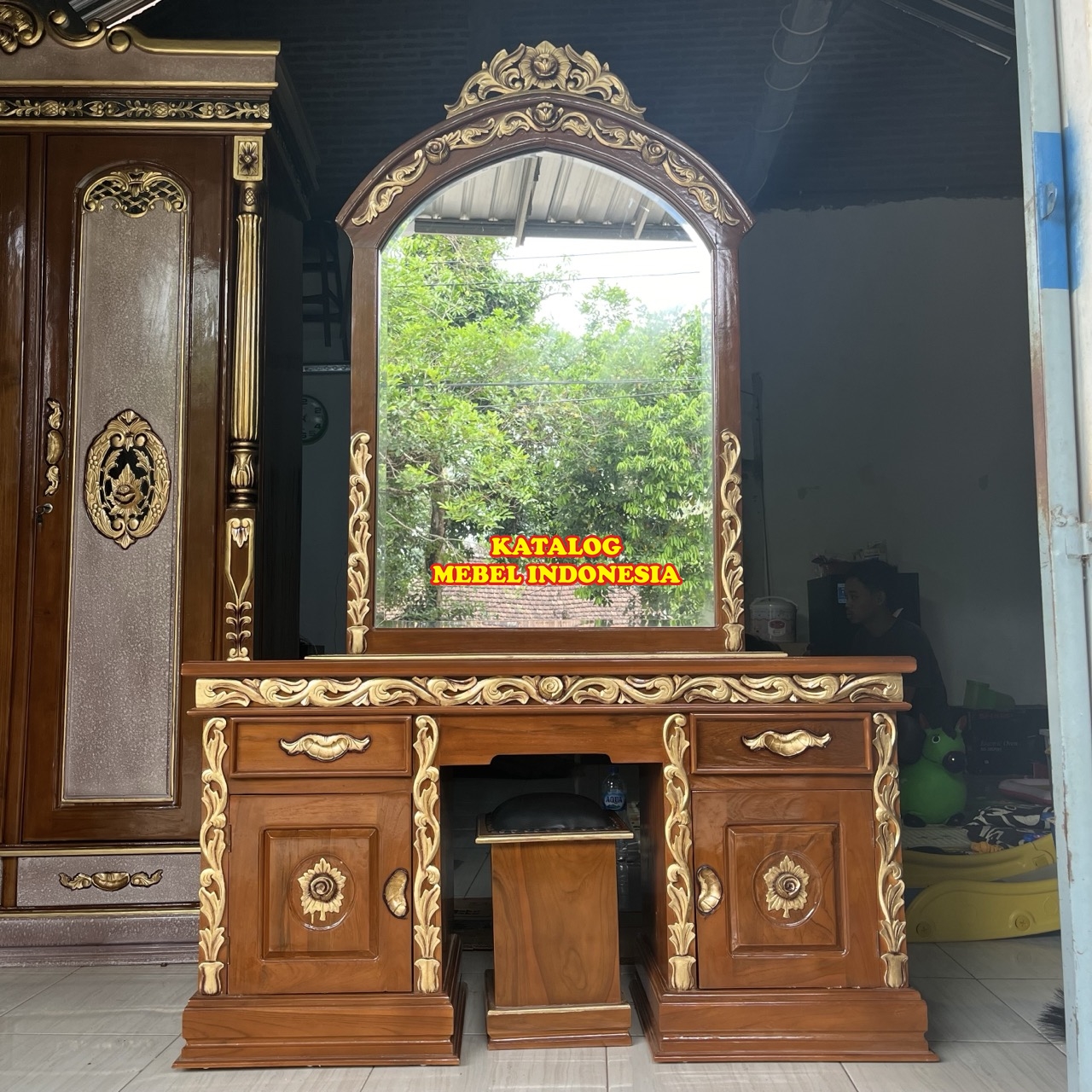 Meja Rias Rawana Kayu Jati Solid dengan Motif Ukir