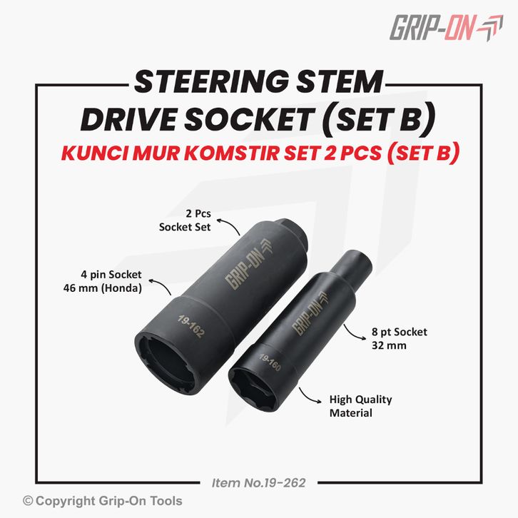 Grip-On Steering Stem 2 Pcs Drive Socket (Set B) Kunci Mur Komstir Set 2 Pcs Treker Komstir Motor Honda