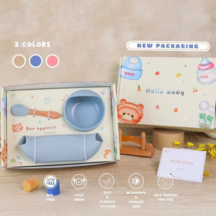 LILLEGIFTS Hampers Bayi Feeding Set Silicone Baby Alat Makan Silikon Bayi MPASI Newborn Kado Lahiran