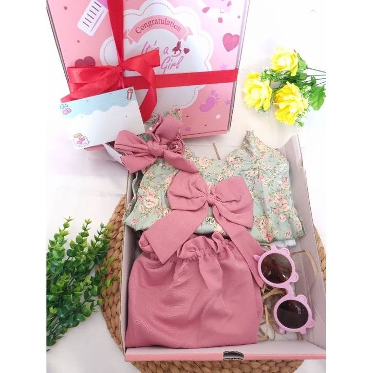 Hampers bayi perempuan PAKET LODY SET lengkap hemat box motif baby girl / kado bayi cewek murah set baju celana bandana