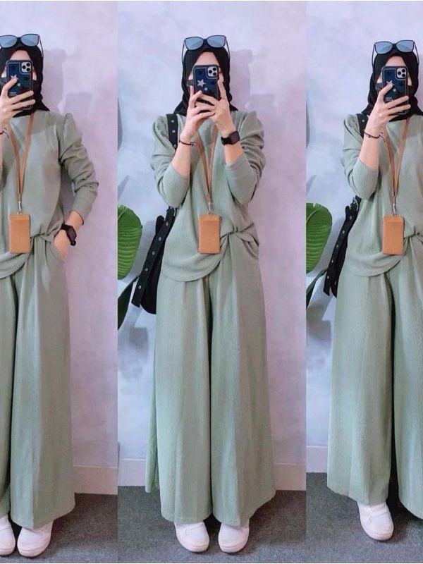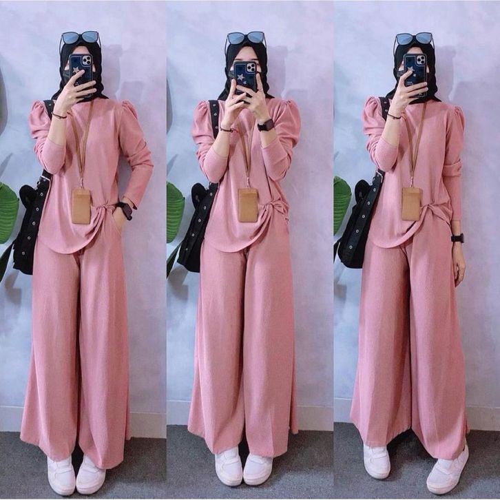 Setelan Wanita Madina Set Celana Cutbray Cringkel Air Flow Jumbo Set | Setelan Wanita Celana Cutbray Cringkel Air Flow |