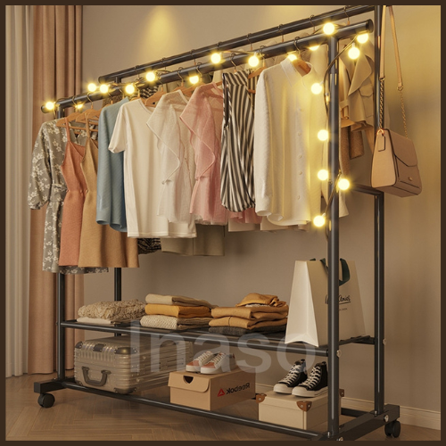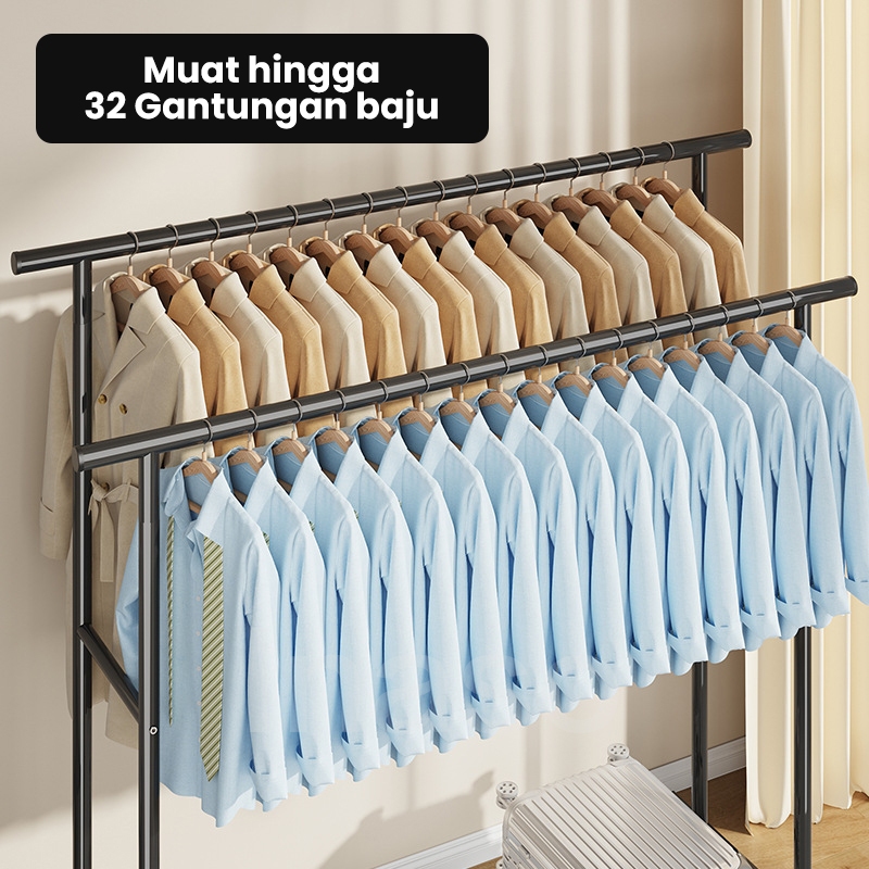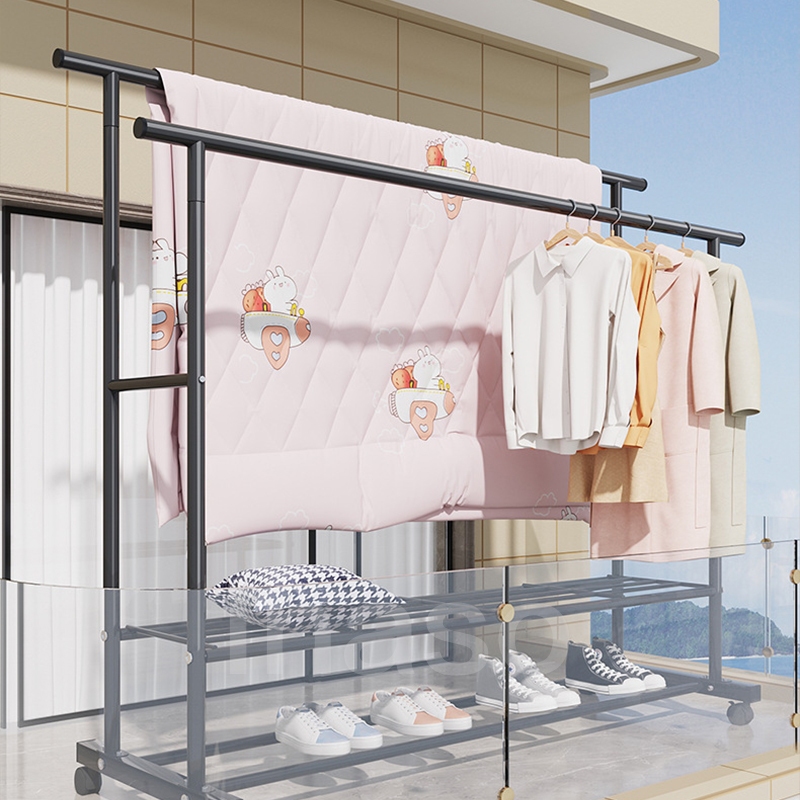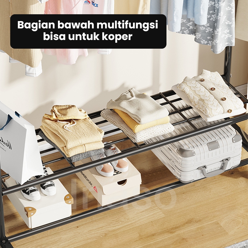 Gantungan Baju /Rak Gantungan Baju Besi Dengan Roda /Rak Jemuran Serbaguna Portable /Rak Gantungan Pakaian Aesthetic