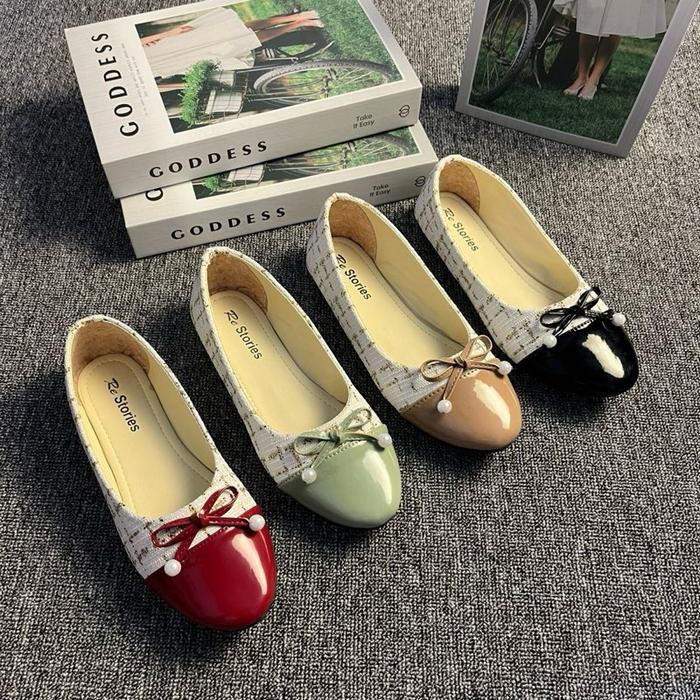 Murah SEPATU WANITA flatshoes motif pita latfrom soll karet anti slip trendy Promo