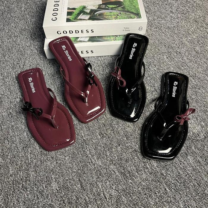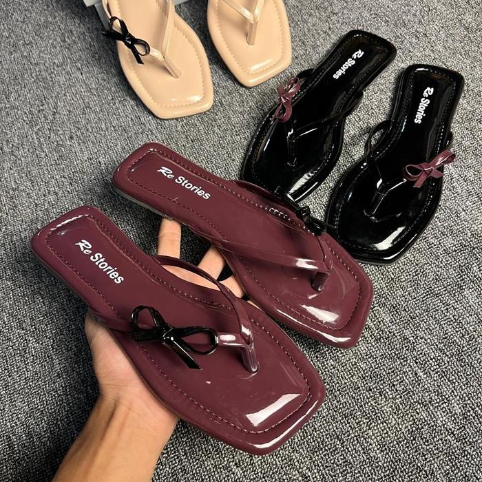 Murah sandal Flat Wanita | sendal teplek wanita terbaru anti slip - HITAM 36 Promo
