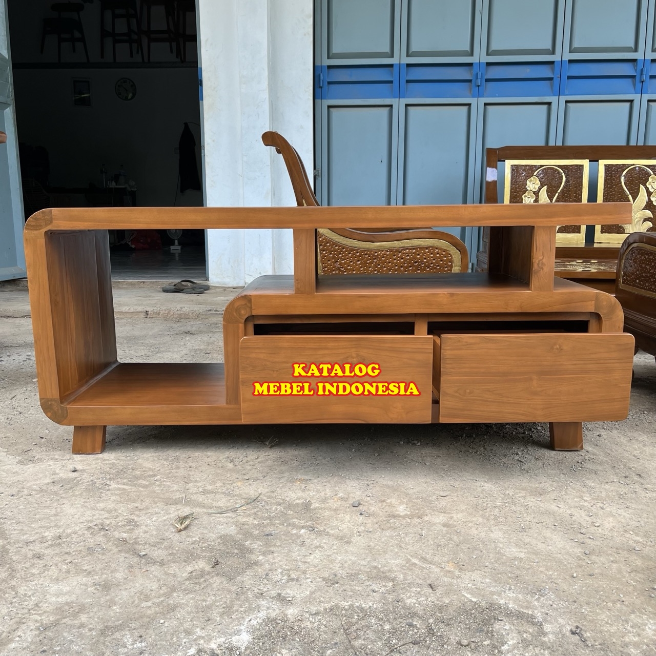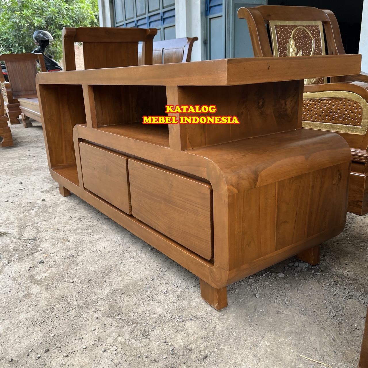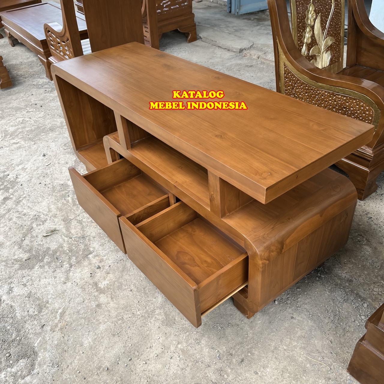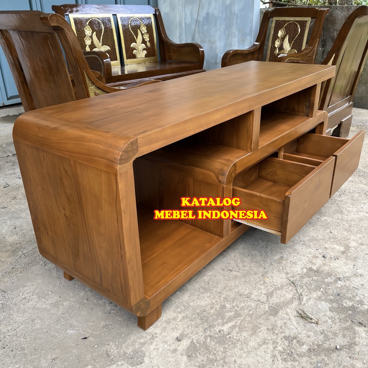 Bufet Meja TV Minimalis Retro Kayu Jati Terlaris Produksi Mebel Jepara