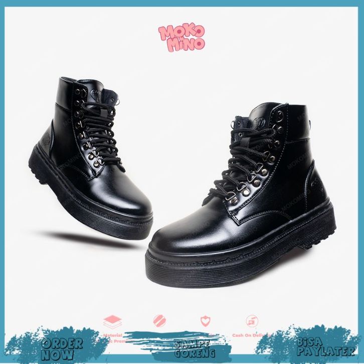Sepatu High Boots Formal Wanita 8 Hole Warna Hitam