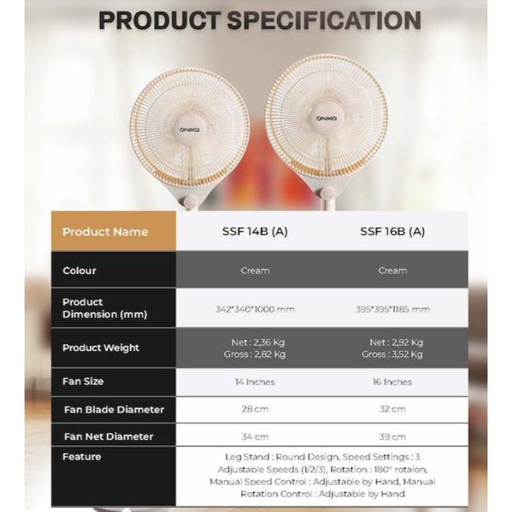 KIPAS ANGIN NIKO 14" SSF-14B CREA, SSF 14B 14 INCH - BERGARANSI RESMI