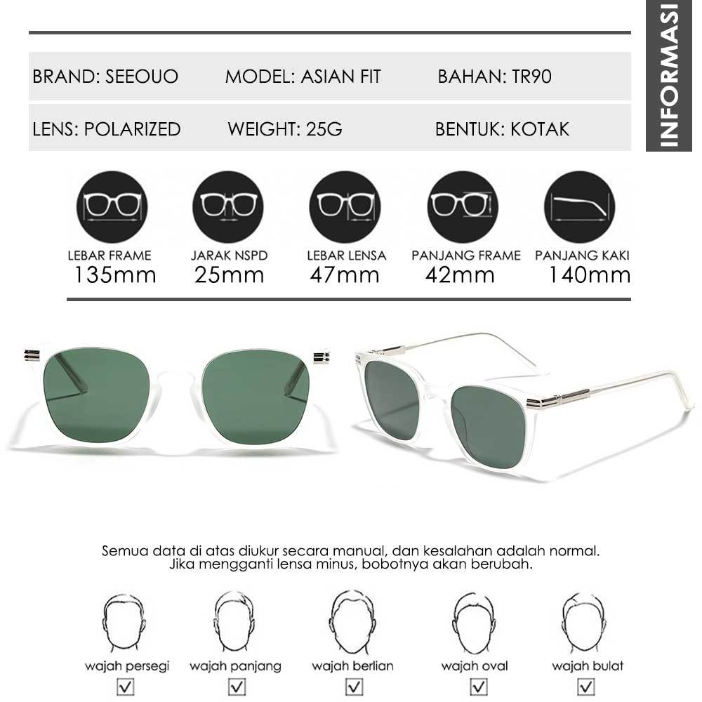 SEEOUO SUNGLASSES KACAMATA POLARIZED LENS ANTI UV ANTI SILAU MODEL KOTAK STYLISH TR90 FASHIONABLE SUN PROTECTION PRIA WANITA 7003X
