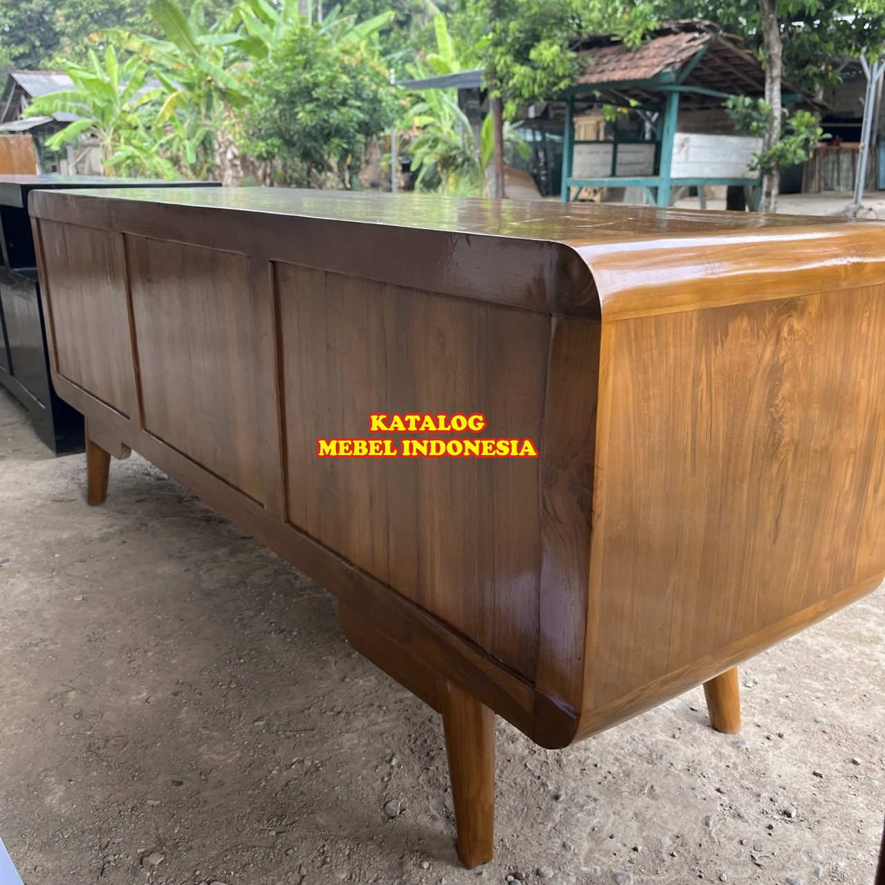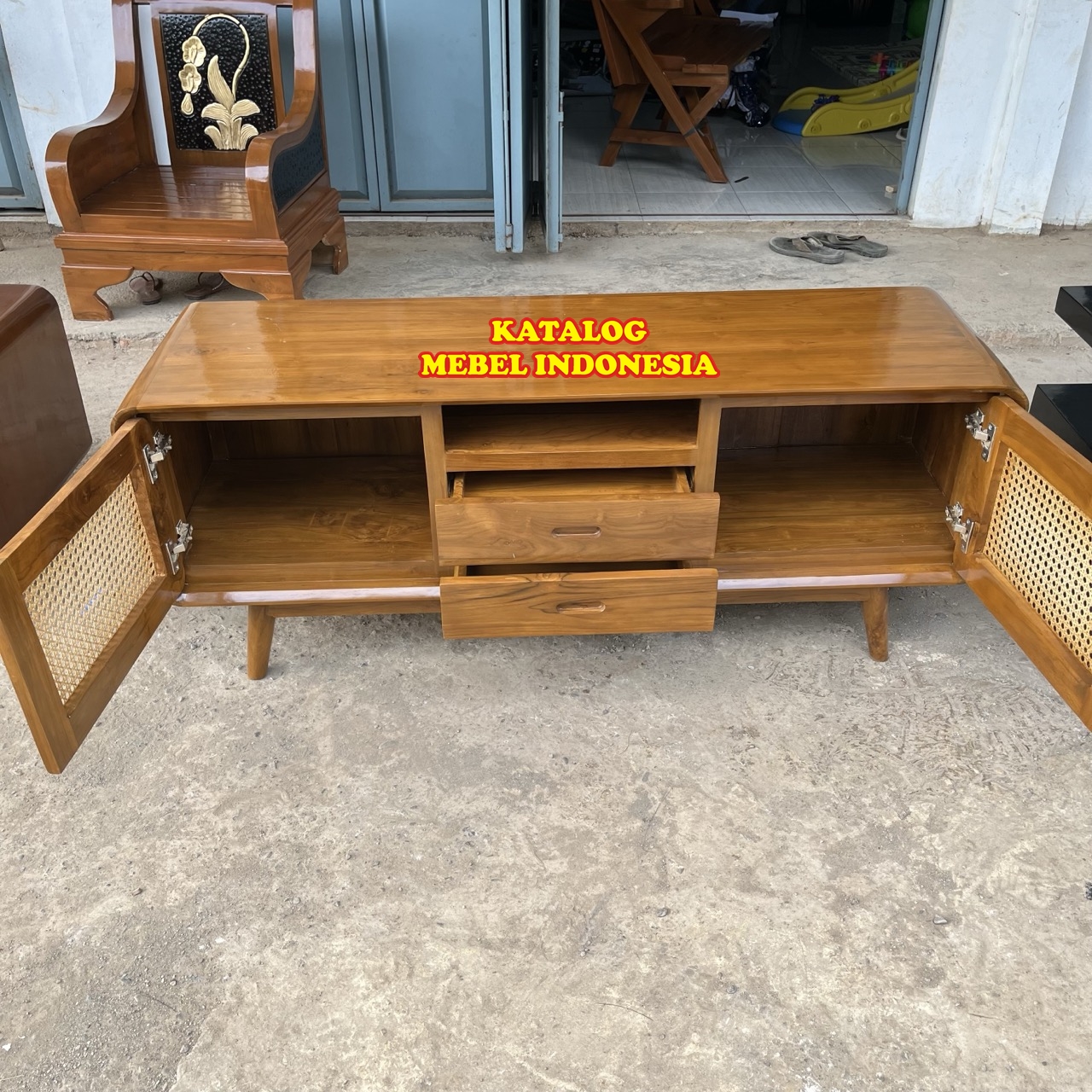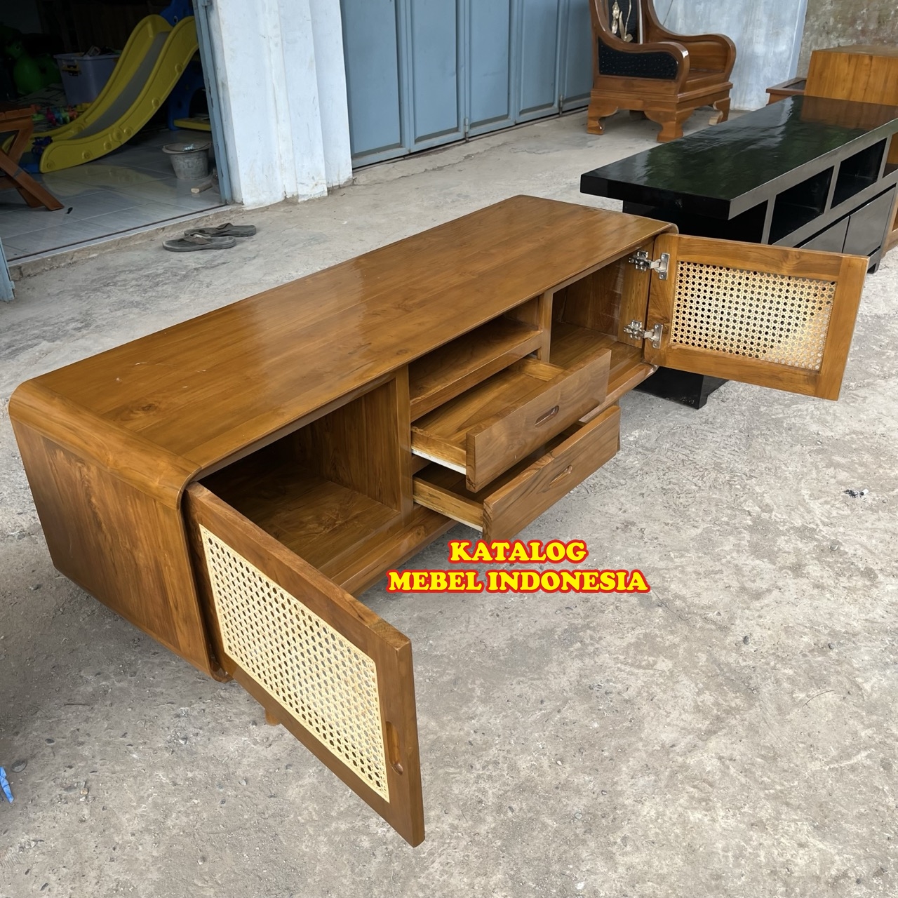 Bufet Meja TV Jati Minimalis Retro Pintu Rotan