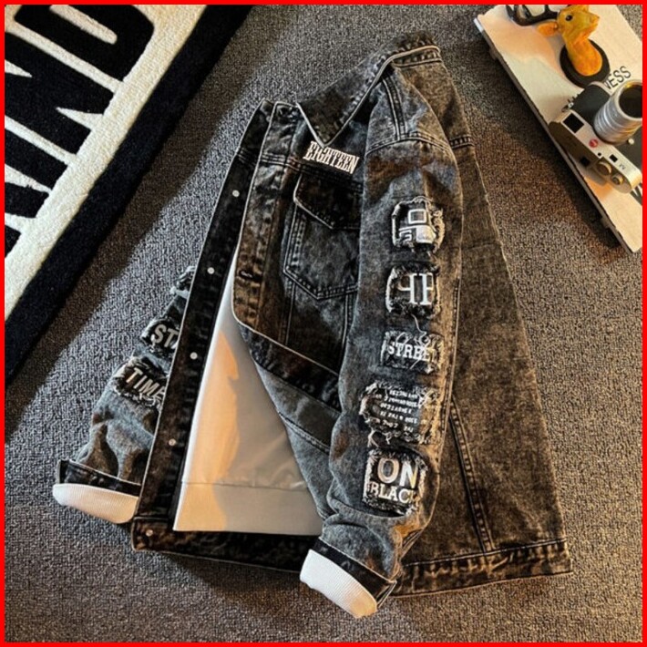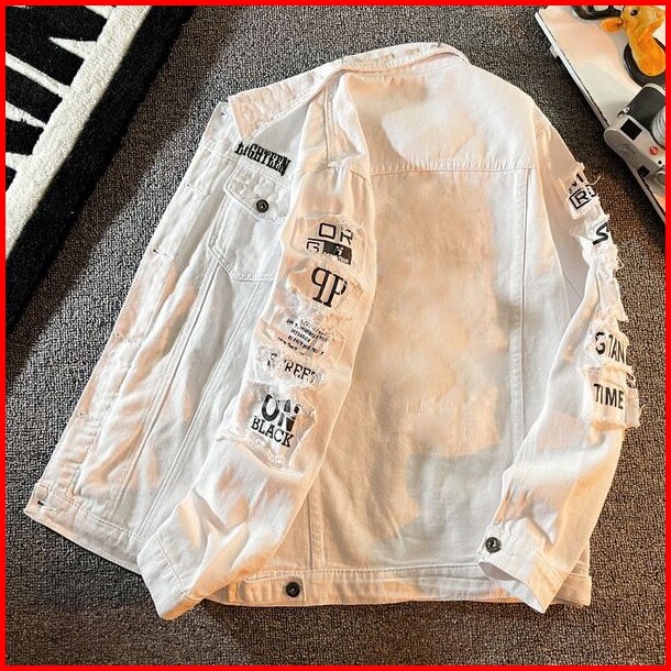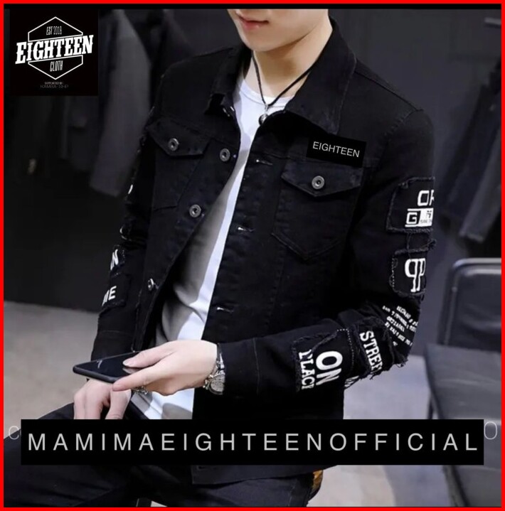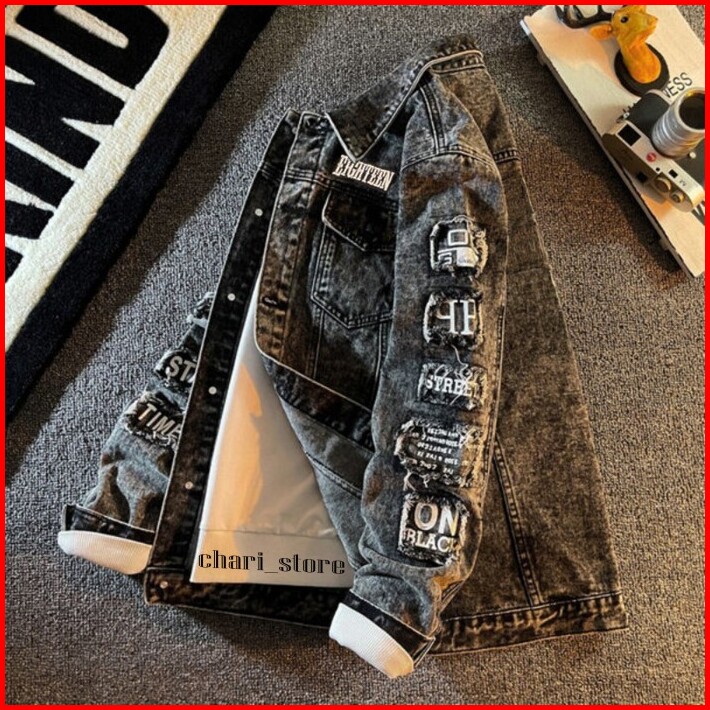 Jaket Jeans Denim Atasan Pria Motif Bordir Premium Sobek Jeans Cowok