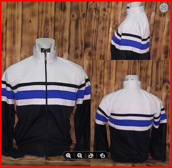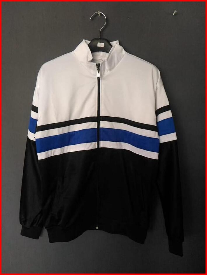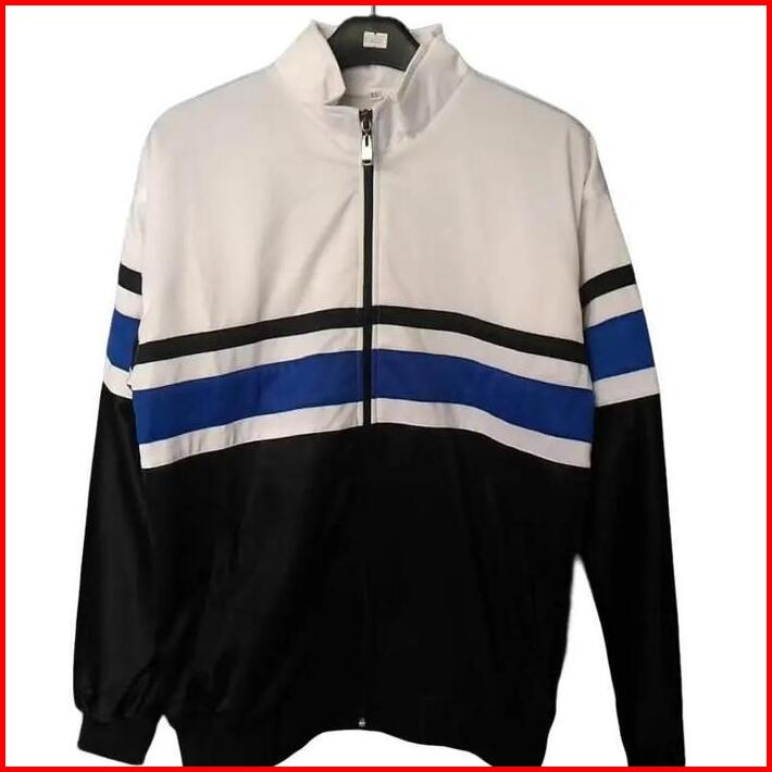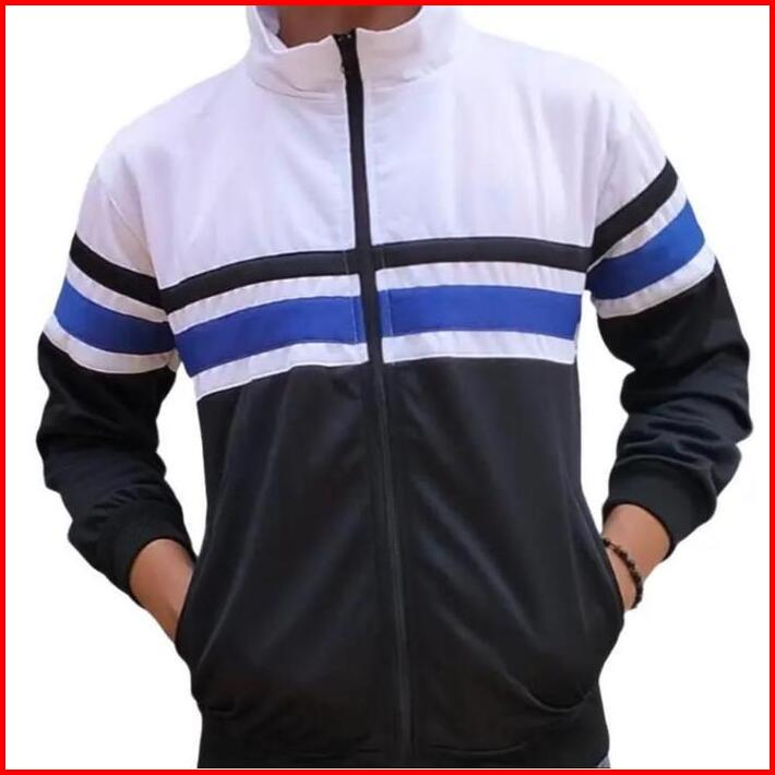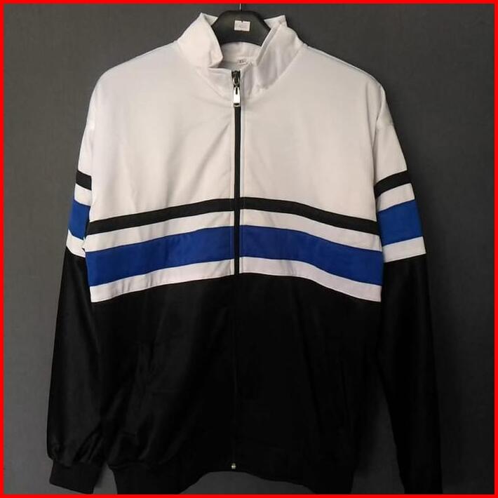 Jaket Tracktop Putih Hitam List Biru Casual Eren Tebal Rojali Pria Wanita Bomber Zipper Distro Navy Cowok Keren Sweater