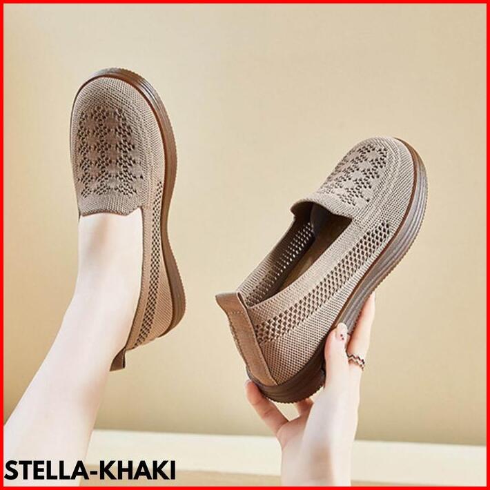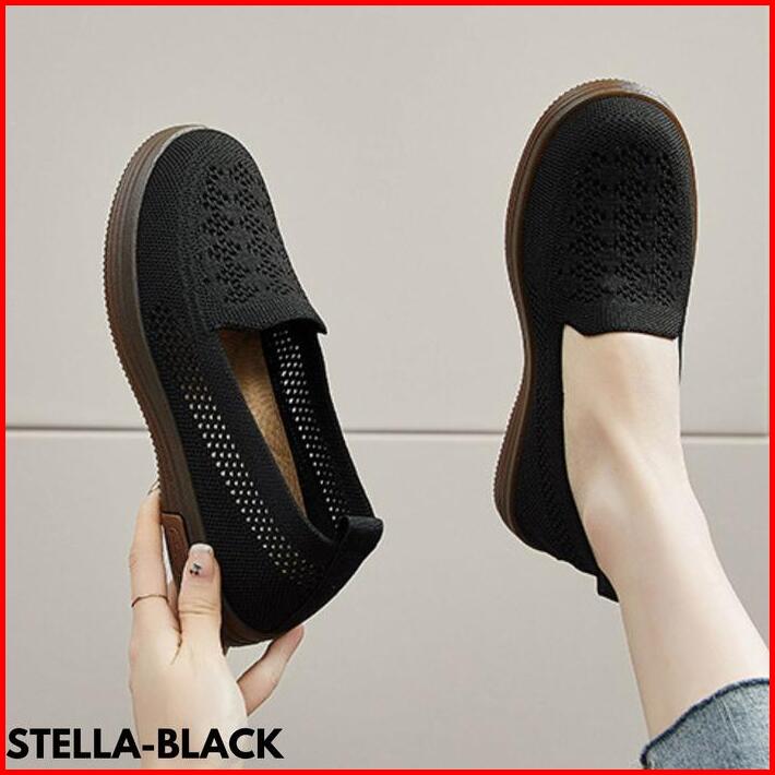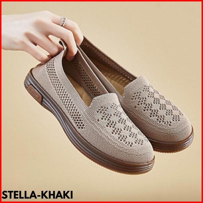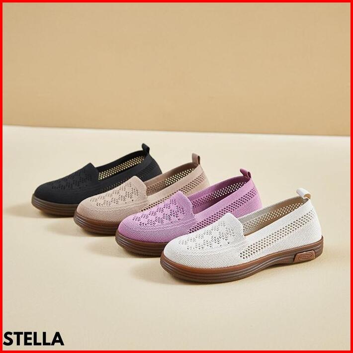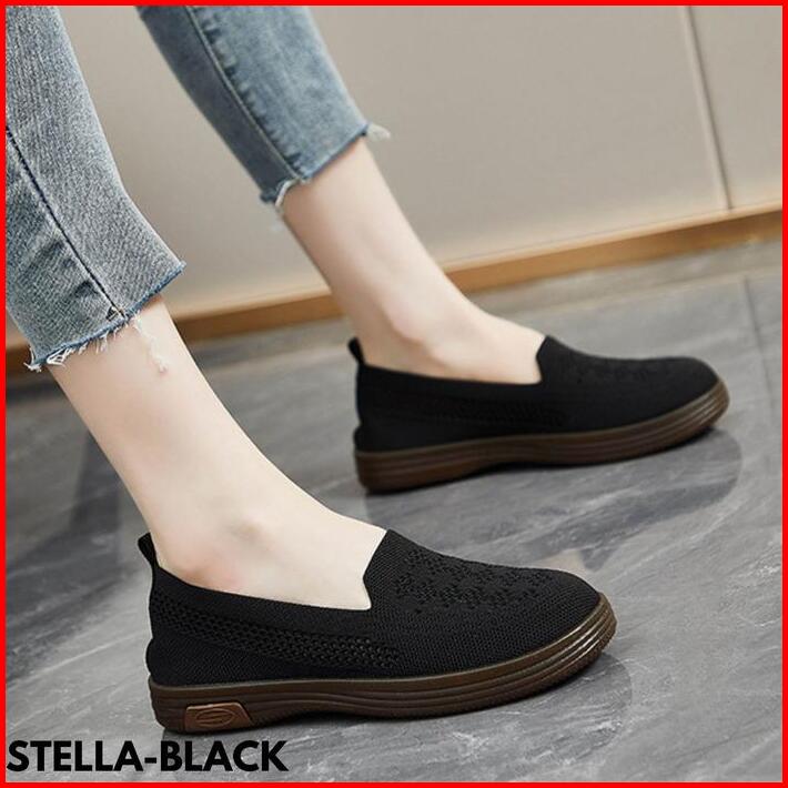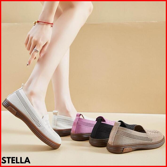 Sepatu Sneakers Wanita Praktis Elastis Nyaman Dipakai Daily Kampus Kantor Bahan Flyknit Bagus Stella