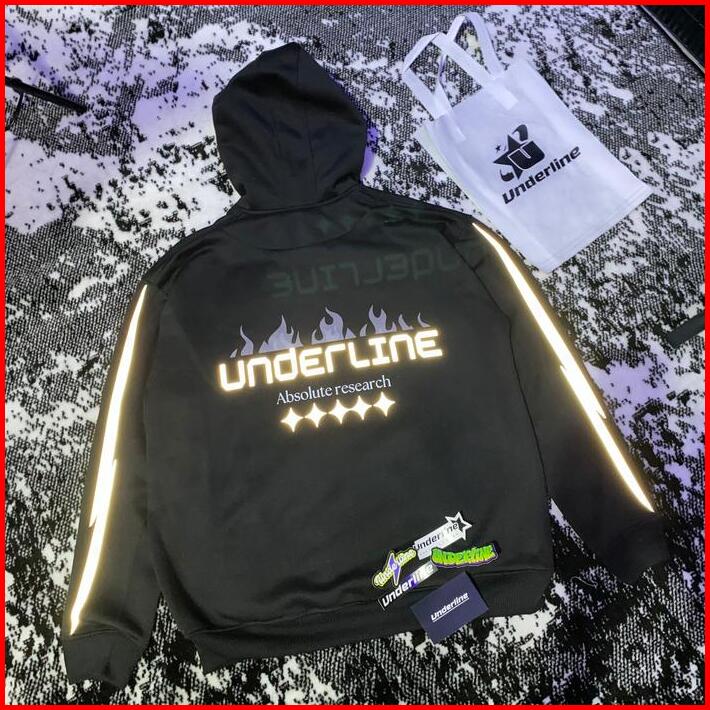 Hoodie Underline Reflektif Menyala V2 Unisex Pria Wanita Fleece Tebal Gramasi 280 L Gratis Stiker Dan Tootebag