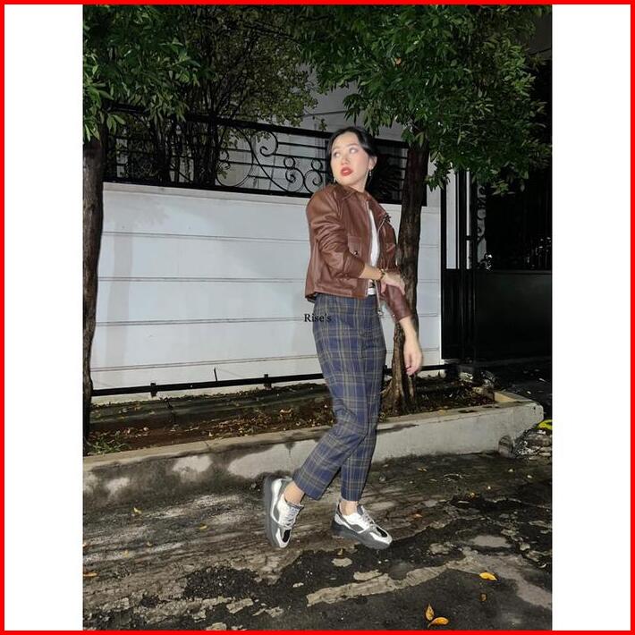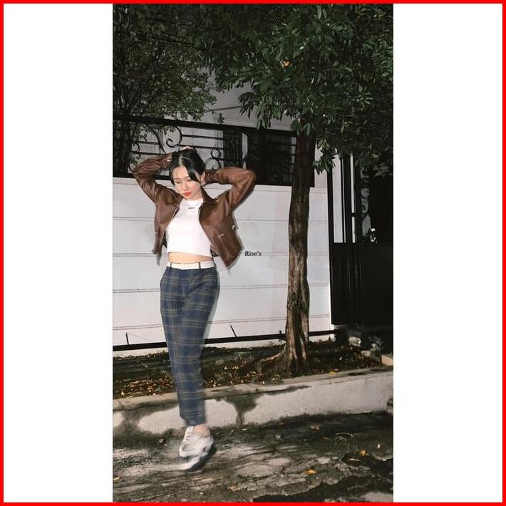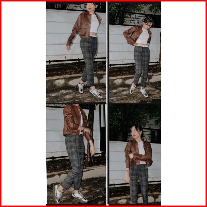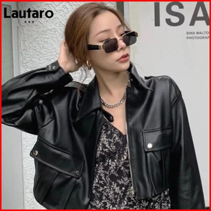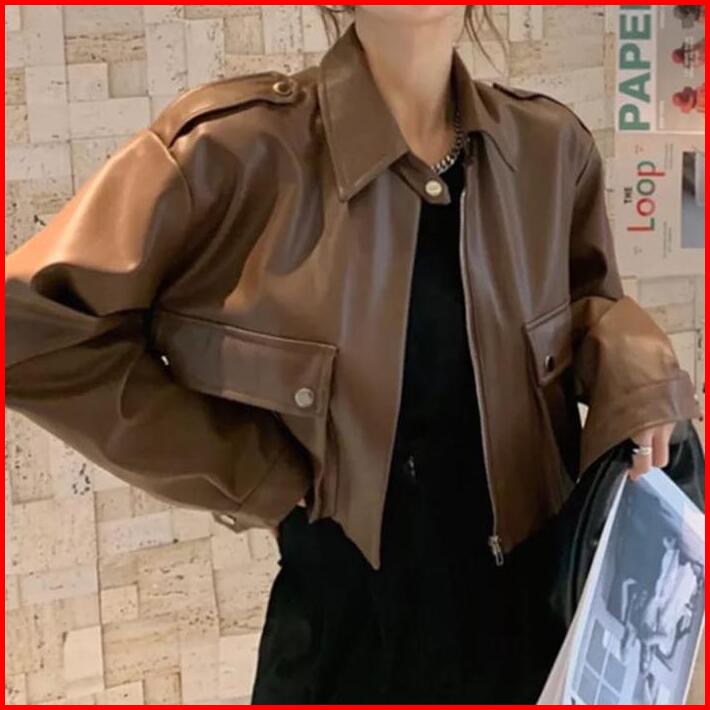 Jaket Kulit Crop Wanita Oversize Big Pocket Jacket Kancing Blazer Casual Atasan