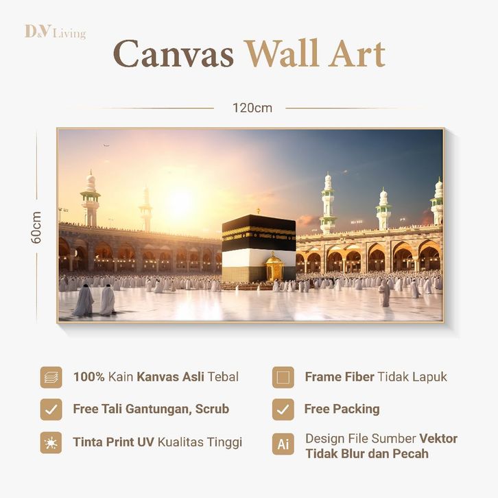 DVLIVING Hiasan Dinding Kabah 120x60cm Premium Minimalis Lukisan R Tamu Kabah Makkah Masjidil Haram, Lukisan Islami, Hi