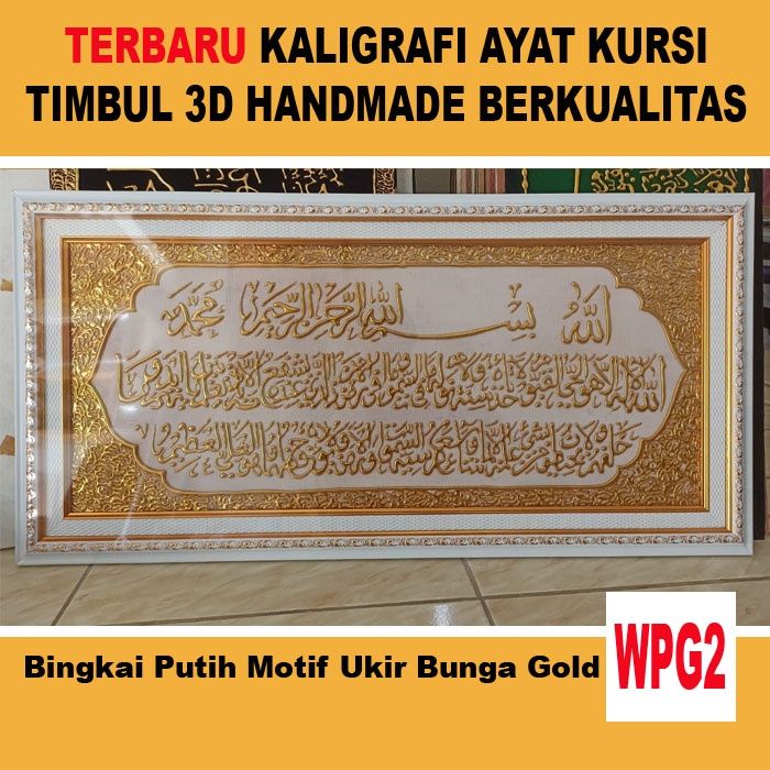 Kaligrafi Ayat Kursi Timbul 3D Handmade Bingkai Putih Motif Berkualitas