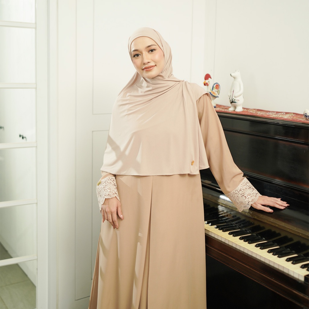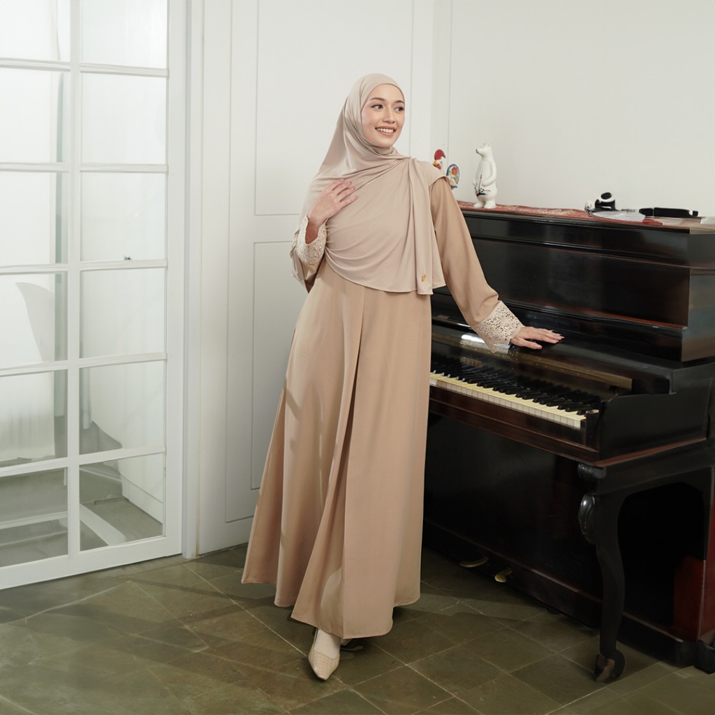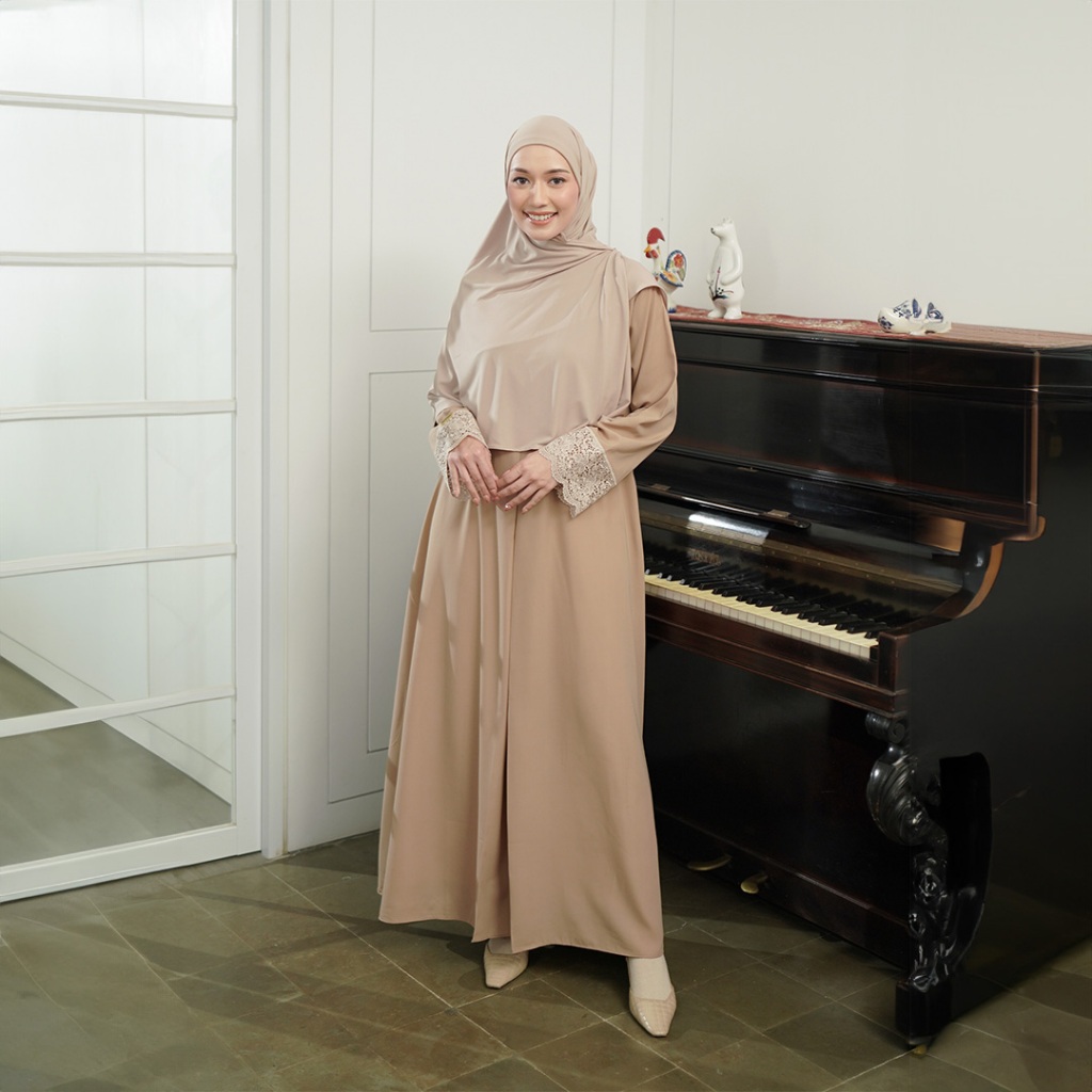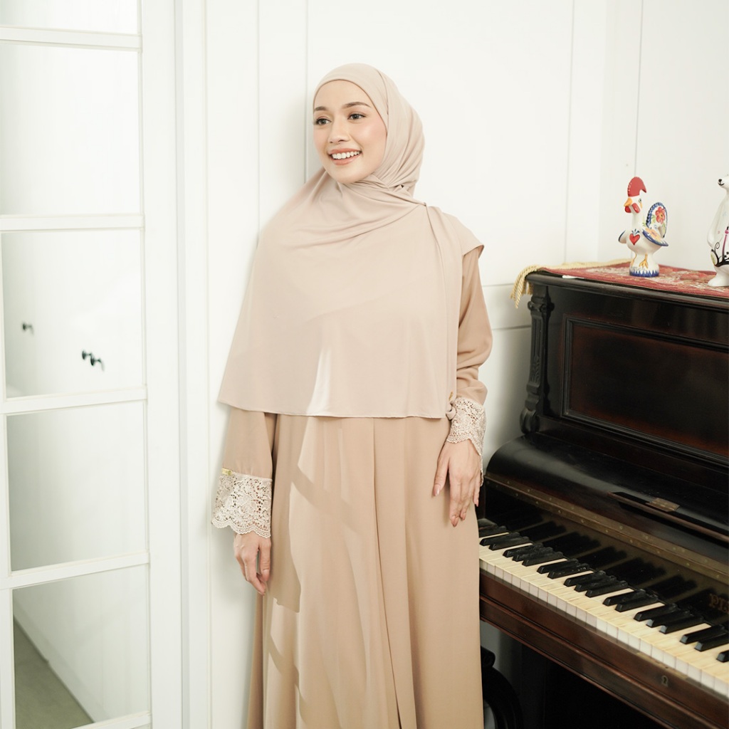 ( TERLARIS ) Meena Lace Abaya Umroh Cream by Tubita
