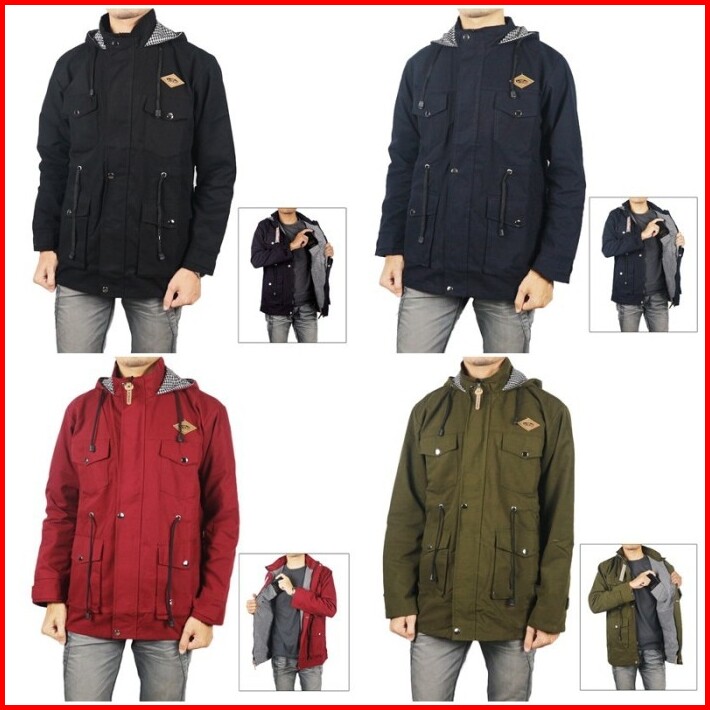 Jaket Pria Jaket Parka Canvas Kanvas Pria Tebal Jaket Hoodie Motor