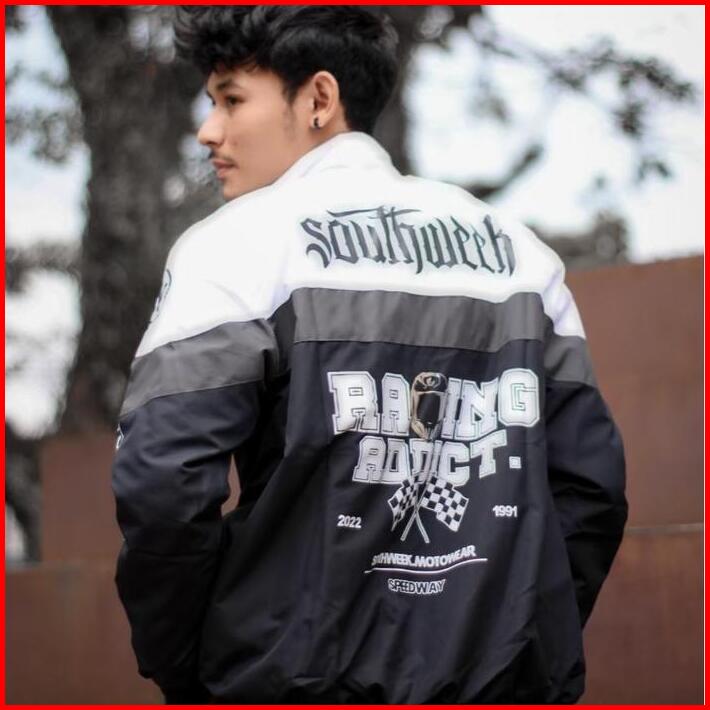 Jaket Sunmori Racing Nascar Vintage Original Salvio Hexia Hitam Putih Santai