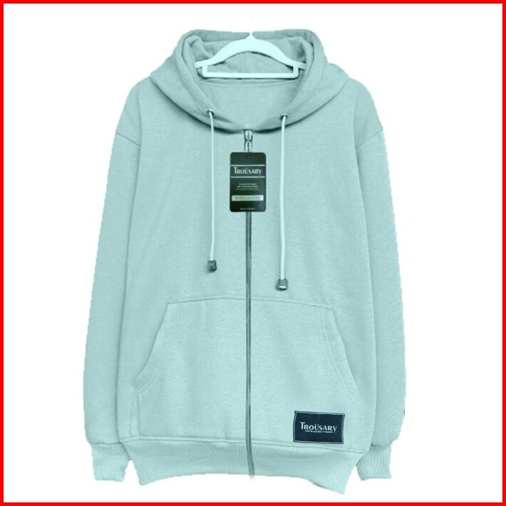 Jaket Sweater Zipper Hoodie Pria Wanita Polos Resleting Hijau Mint S