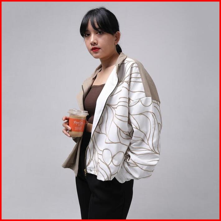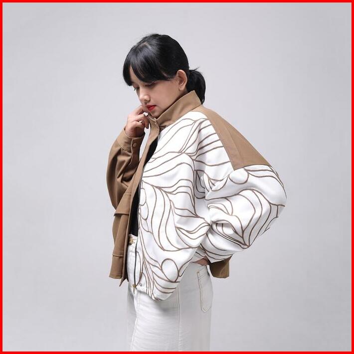 Filoposy X Kopisoe Outer Coco Latte Jacket Bordir Jaket Oversize Panjang Atasan Wanita