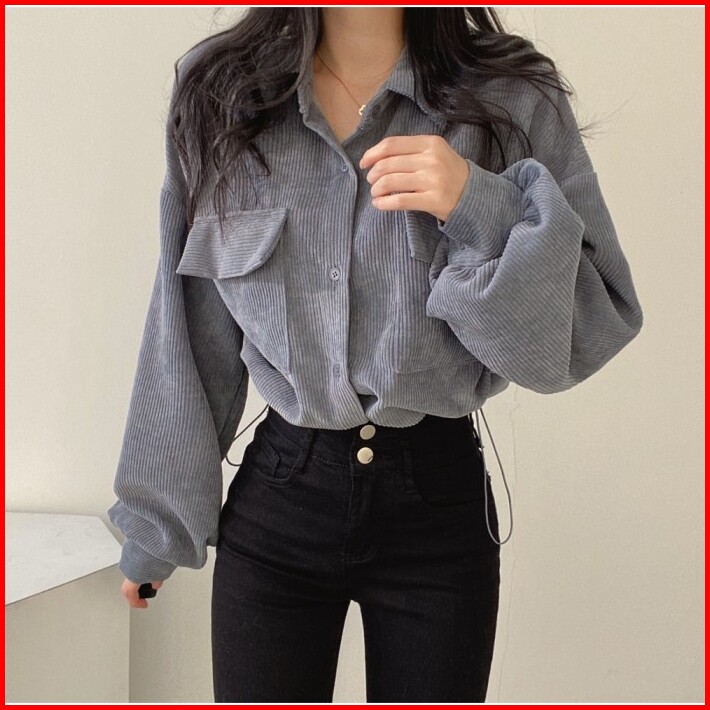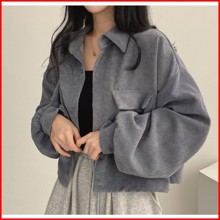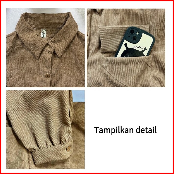 Outer Kemeja Korduroy Wanita Lengan Panjang Oversize Style Jackets