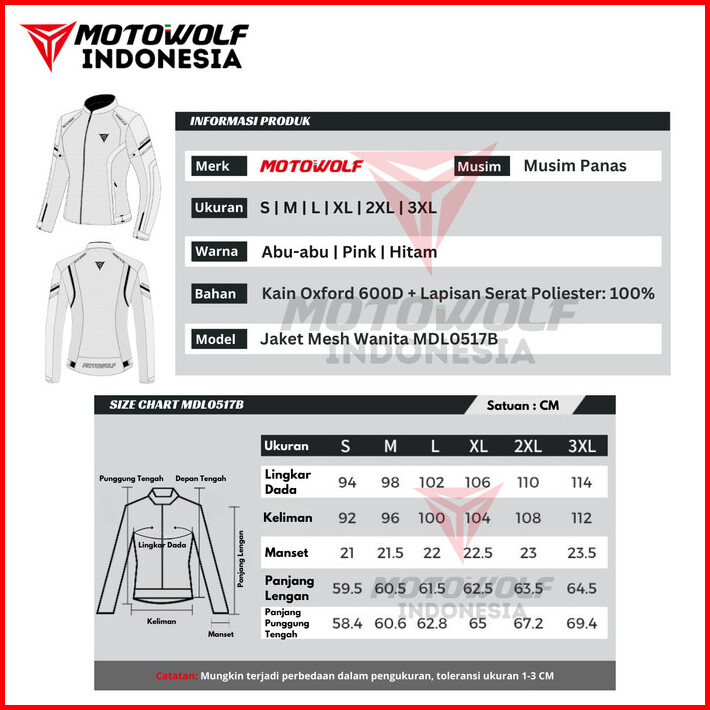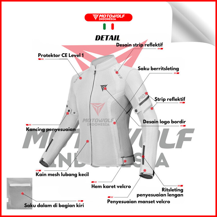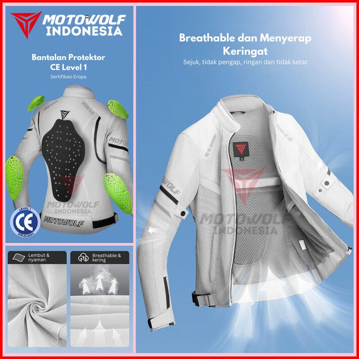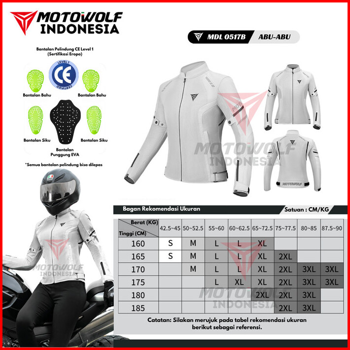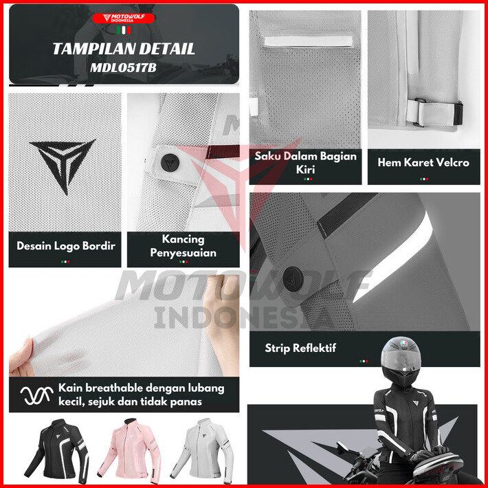 Jaket Touring Motor Cewek Mesh Iklim Tropis Protektor Esa Motowolf 0517b