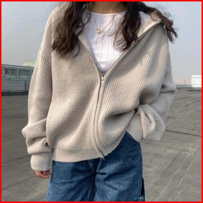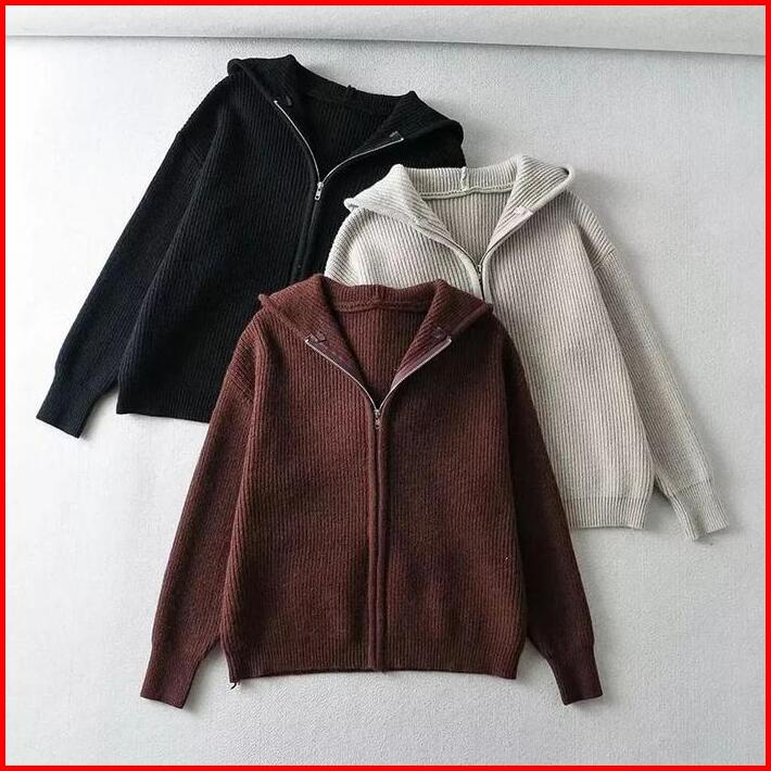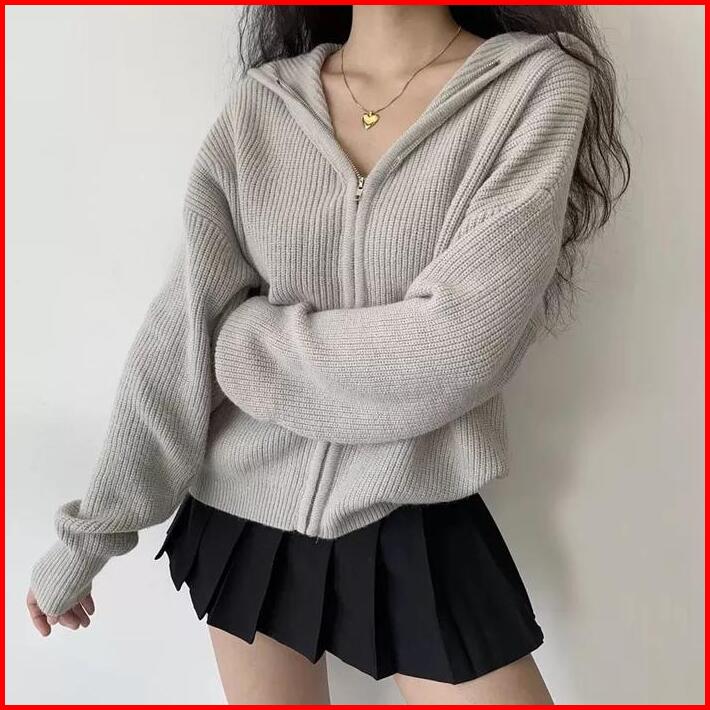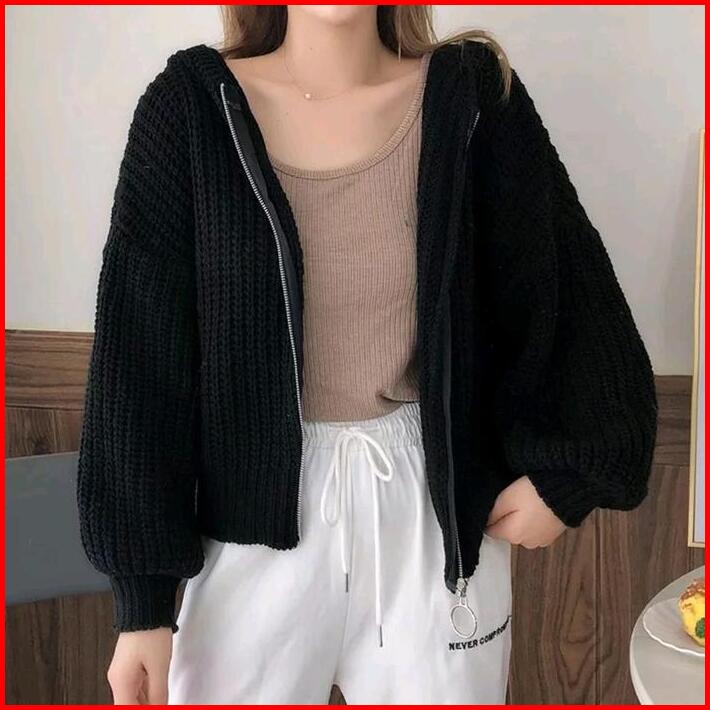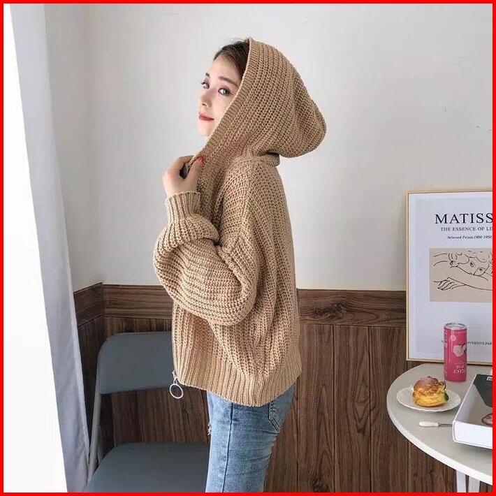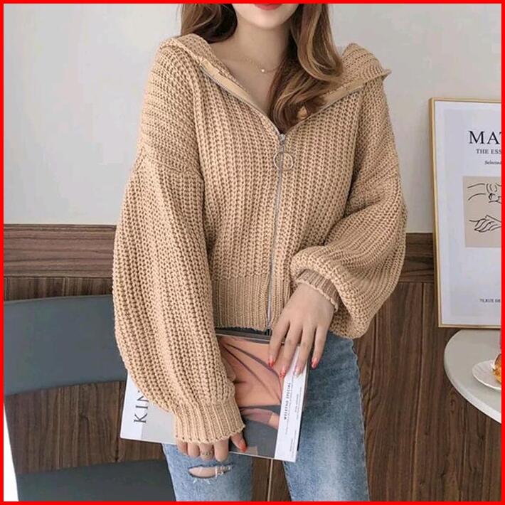 Tebal Jaket Wanita Oversize Reselting Rajut Outer Zipper