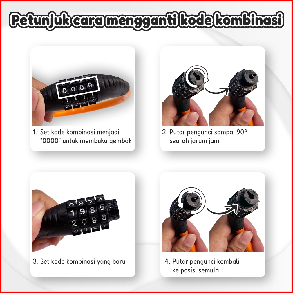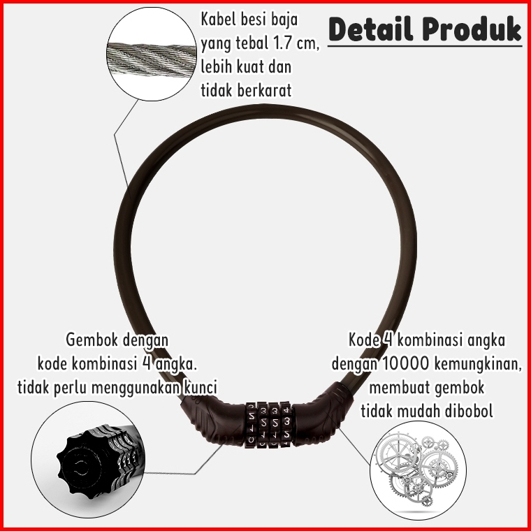 Orange Shop Kunci Gembok Sepeda Anti Maling Kode Angka Cable Lock Gembok Sepeda