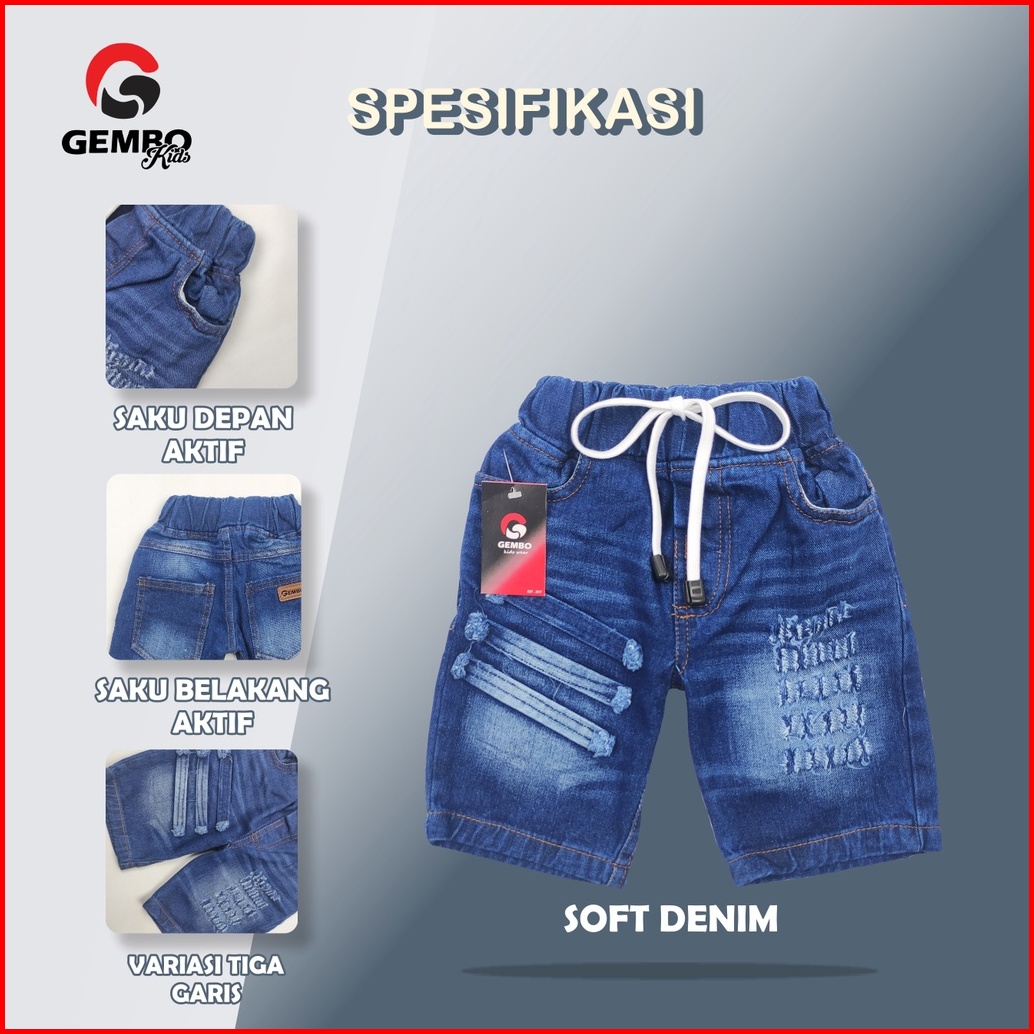 Celana Jeans Anak 1-10 Tahun - Celana Anak Laki-laki Jeans Pendek Wisker Strip Biru Tua - Gembo Kids