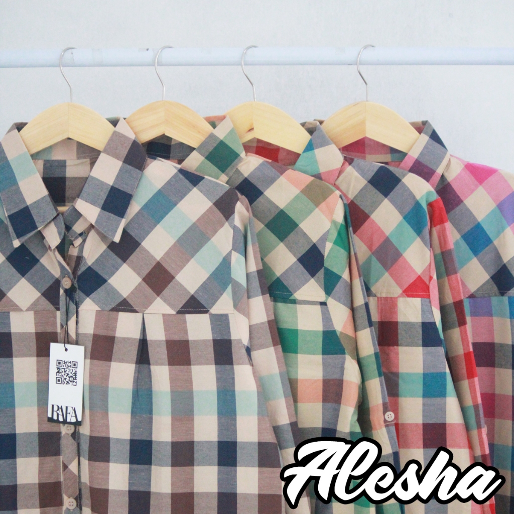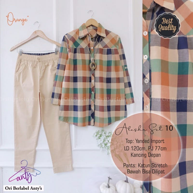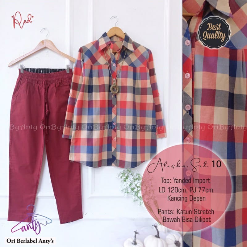 Setelan Kemeja Wanita Alesha Set Bahan Katun Premium Ukuran Jumbo LD 120 cm Motif Kotak by Anty