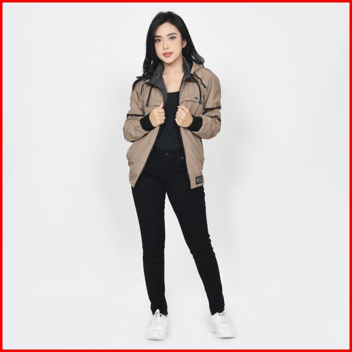 Jaket Parasut Taslan Waterproof Bolak Balik Wanita Original Distro Hoxer