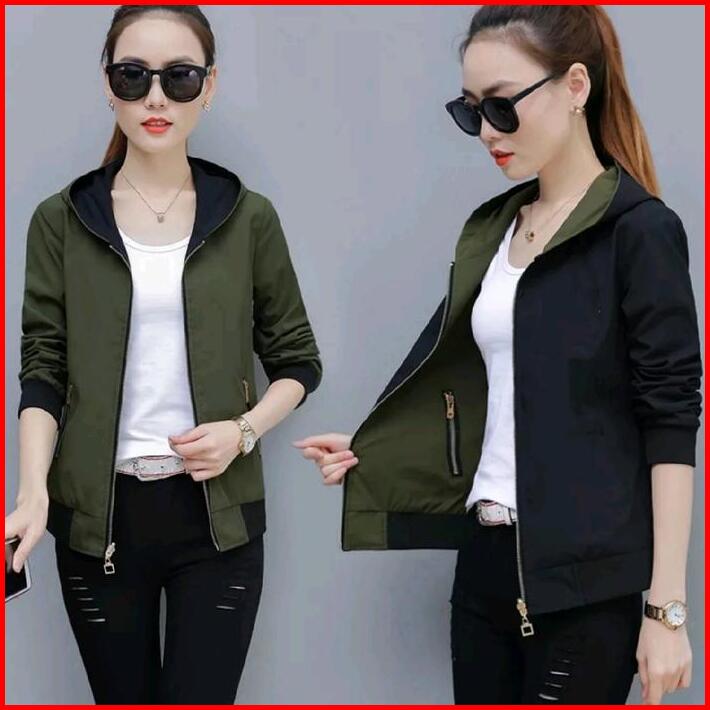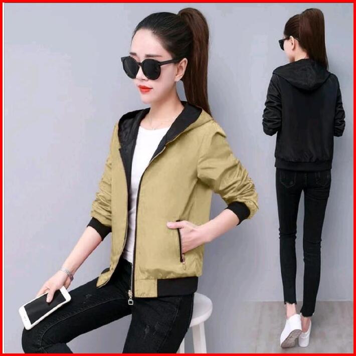 Jaket 2 In 1 Wanita Terbaru Jaket Wanita Bolak-balik Terbaru Bahan Dasar Kain Katun American Driil Slim-fitting Polos Mu