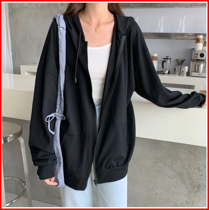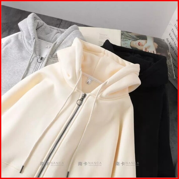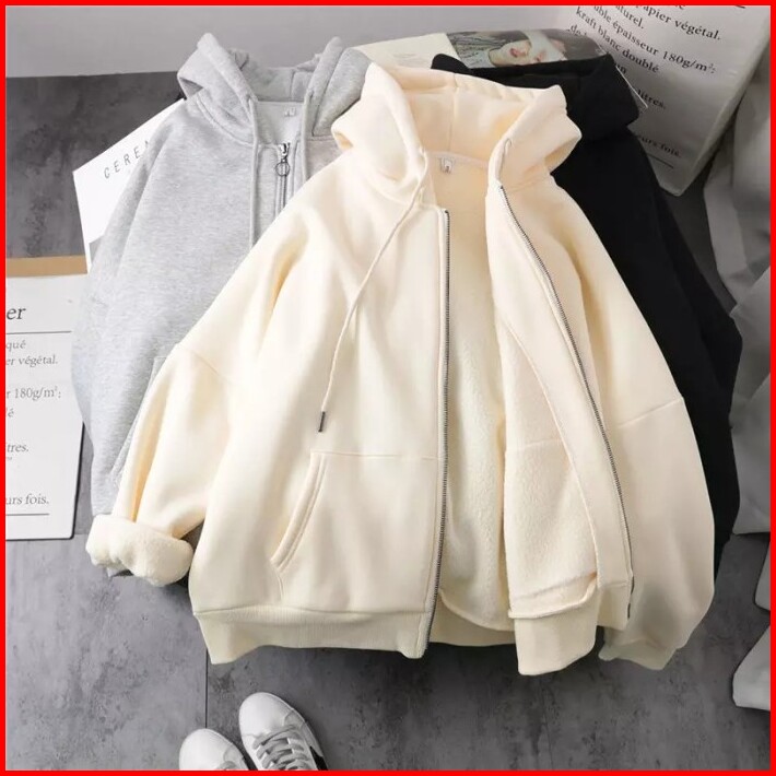 Jaket Hoodie Zipper Polos Unisex Oversize Import Jaket Ziper Wanita