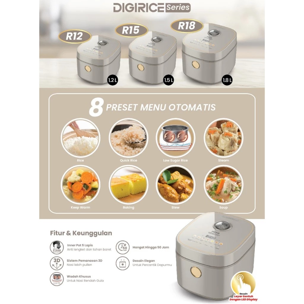 Rice Cooker Digital Mito R12 / R15 / R18 Digirice Series Low Sugar 8 Menu Panci Anti Lengket dan Tahan Baret [GARANSI]