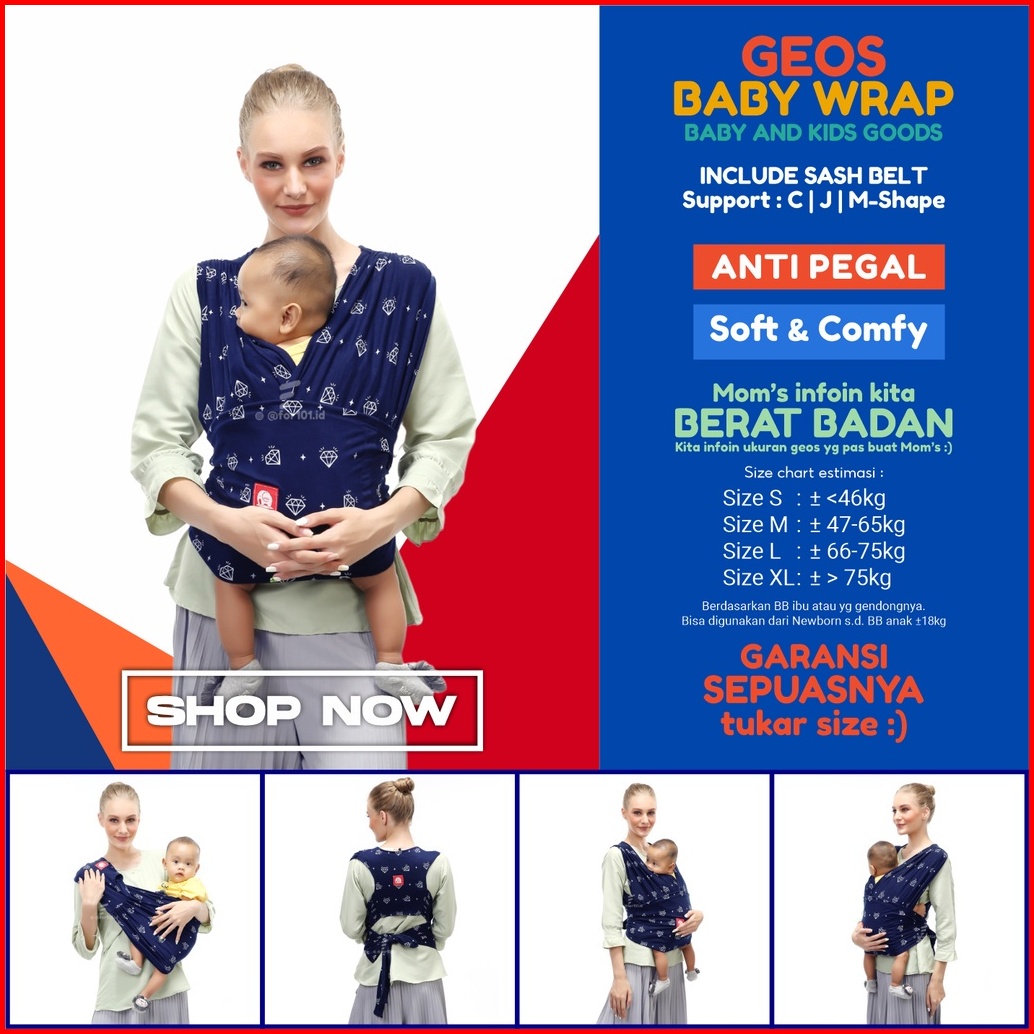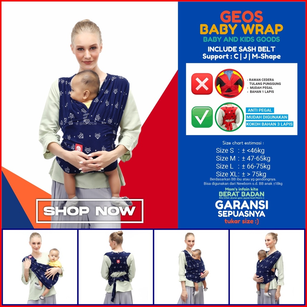 Gendongan Bayi Depan Cimo 3in1 M Shape Baby Wrap Diamnond