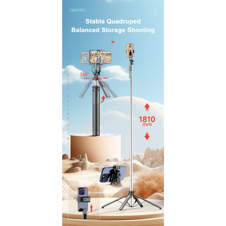 GROTIC Tri HP Tongsis Portable Kaki Empat 180 cm With Bluetooth Remote And Balancing Handle C19